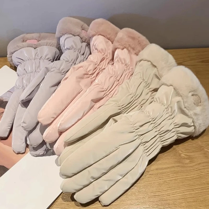 Gants chauds d’hiver pour femmes, mignons pour écran tactile, imperméables et résistants au froid, en peluche épaisse, en coton, nouvelle collection 2025