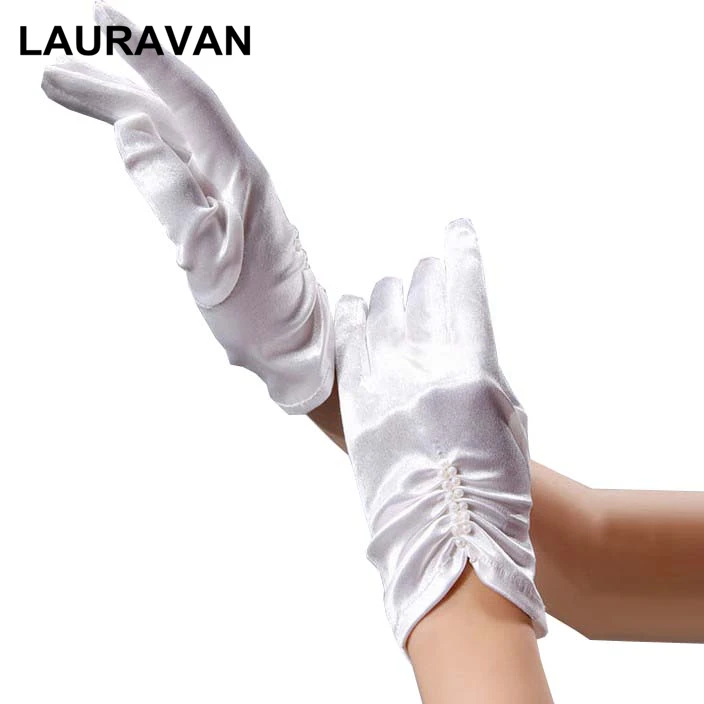 Gants courts élégants pour femmes, rose, bleu, pour patients de mariage, doigt complet, perles, longueur du poignet, costume de fête de Rh, gants blancs, gelin |