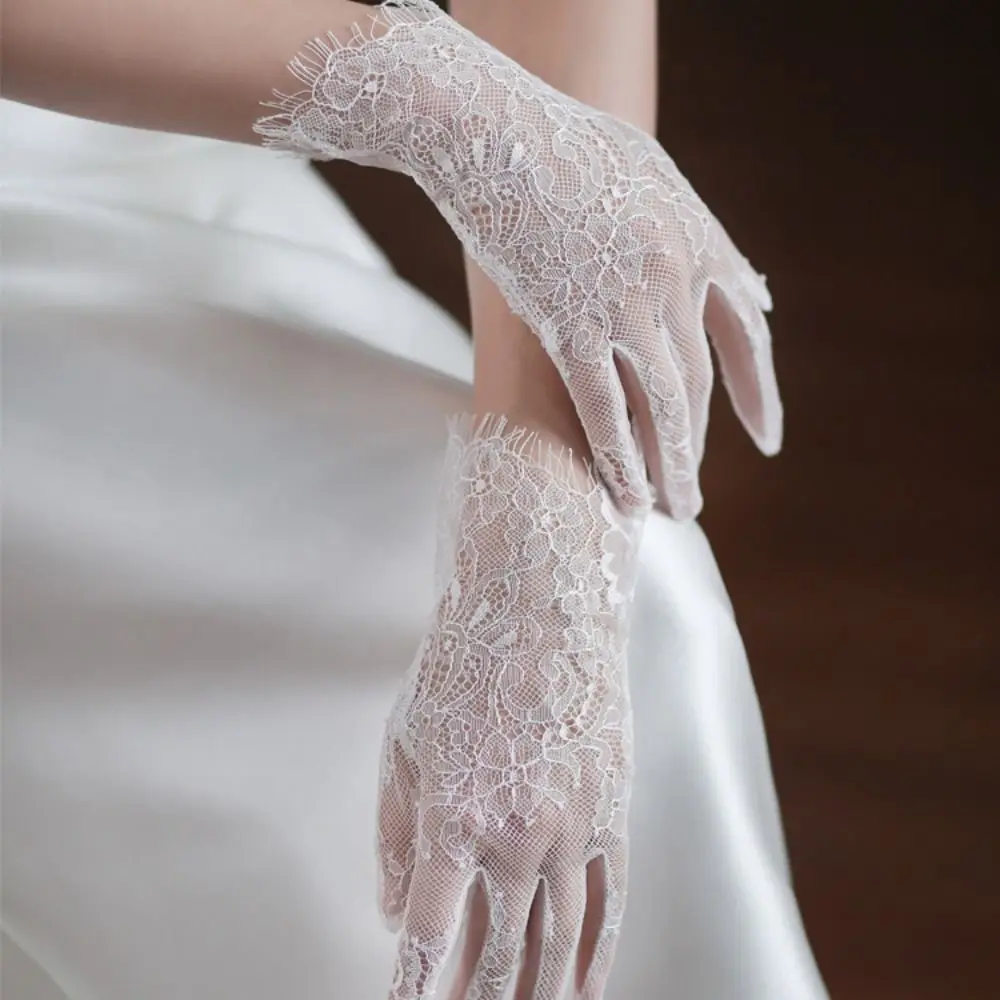 Gants de conduite élastiques courts, robe de dîner pour Banquet, Cosplay, longs en dentelle, mitaines de mariage, gants en maille pour fête |
