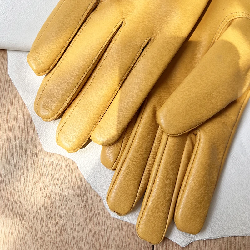 Gants de conduite élégants pour hommes et femmes, en cuir véritable, mitaines courtes, doublure en velours chaud, mode hiver automne