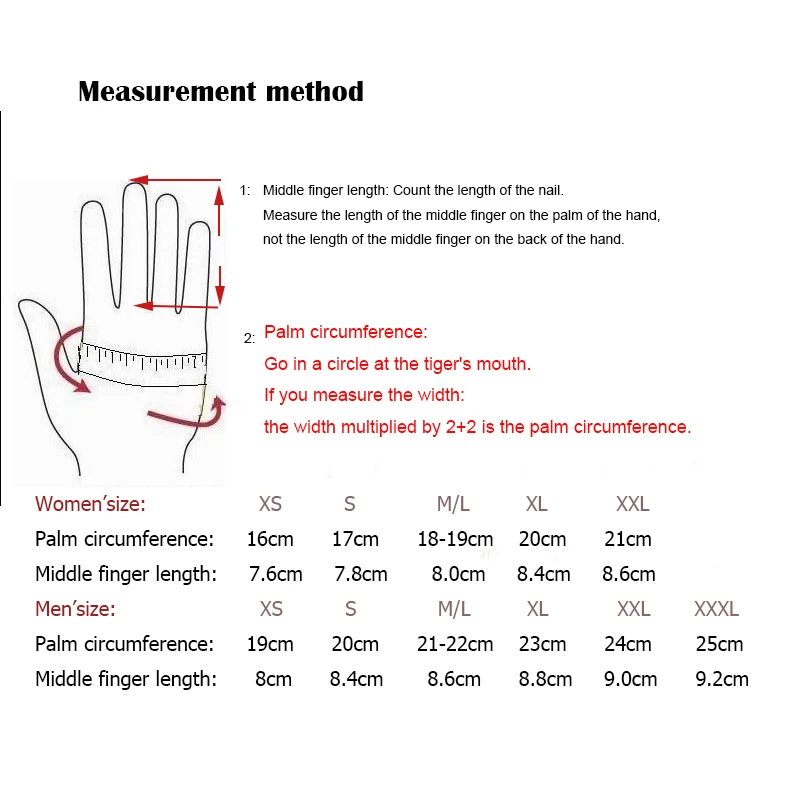 | Taille des gants | M-L thin, M-L velvet, S thin, S velvet, XL thin, XL velvet, XS thin, XS velvet, XXL thin, XXL velvet |