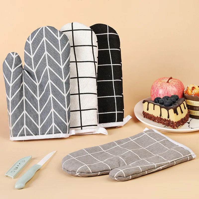 Gants de cuisson en coton et lin avec isolation thermique, anti-brûlure et résistance aux hautes températures |