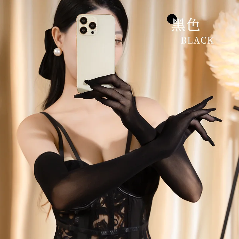 Gants de fête élégants pour femmes, brillants à l’huile, élastiques, transparents, à cinq doigts, protection solaire, pour sécher la mariage, Allure, nouvelle collection