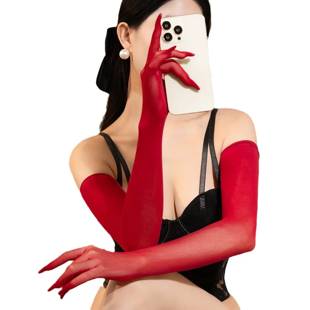 Gants de fête élégants pour femmes, brillants à l'huile, élastiques, transparents, à cinq doigts, protection solaire, pour sécher la mariage, Allure, nouvelle collection |