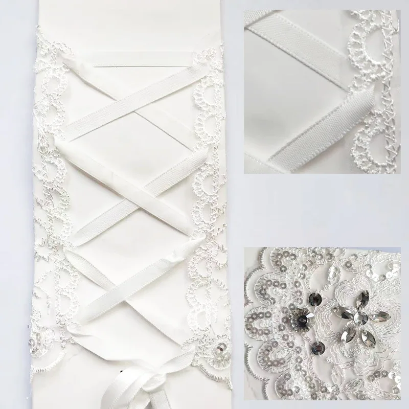Gants de mariée blancs/rouges/Beige, 1 paire, élégants paragraphe court, strass, dentelle blanche, beaux accessoires de mariage |
