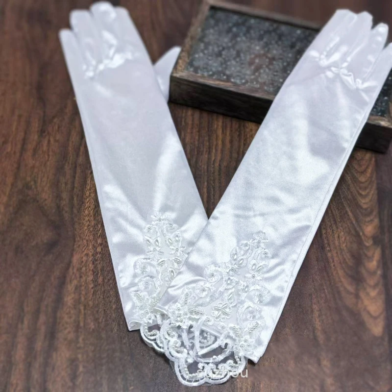 Gants de mariée en Satin et dentelle élégante, longueur Eblow, gants de fête de noël en dentelle blanche, gants de mariage |