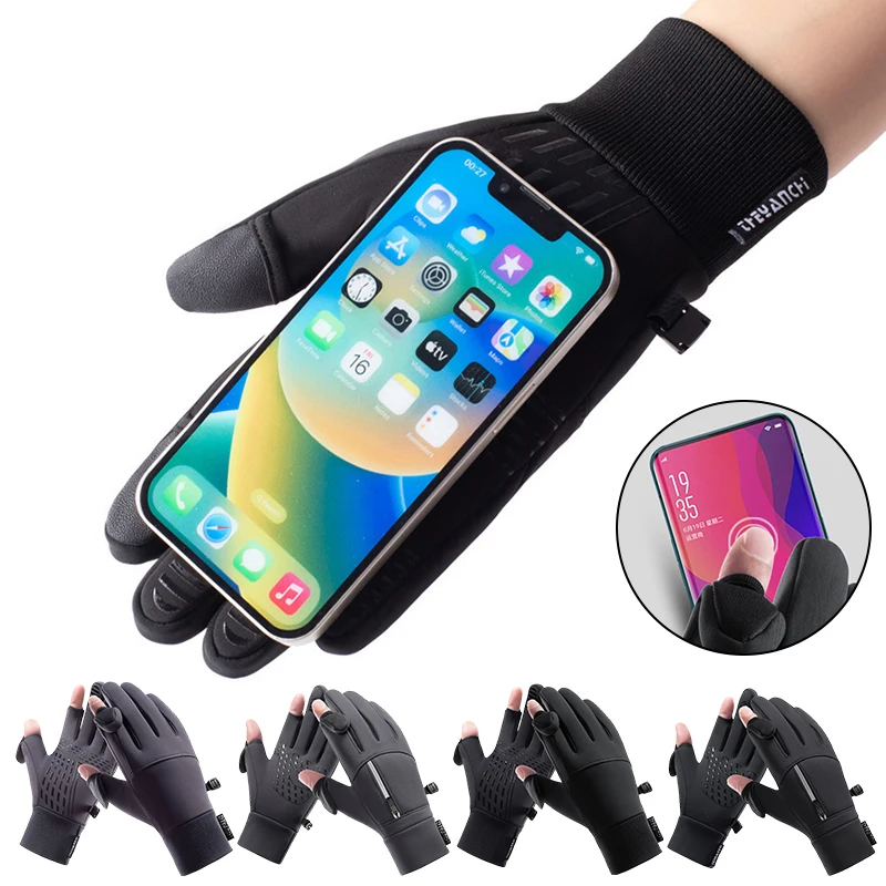 Gants de pêche pour femmes et hommes, imperméables, pour l'extérieur, pour écran tactile, moto, chauds, coupe-vent, antidérapants, pour l'hiver |