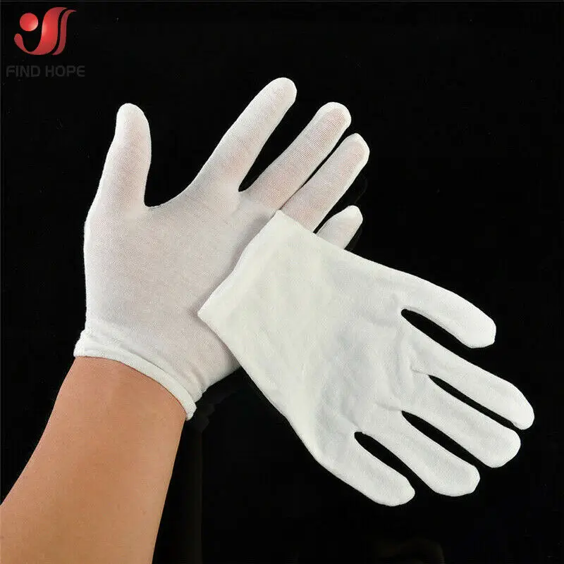 Gants de protection en coton blanc, 6/12 paires, pour le travail, l'inspection des bijoux, gants de sécurité jetables, légers, unisexes, doux |