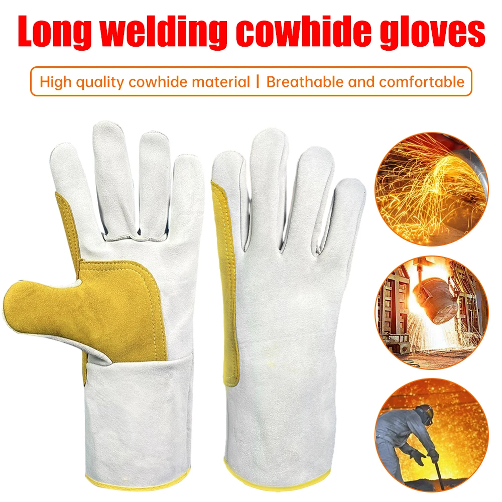 Gants de Soudage Longs en Cuir Souple, Soudeur Électrique, Protection du Travail, Site, Optique Durable, Équipement de Protection Industriel, 1 Paire |