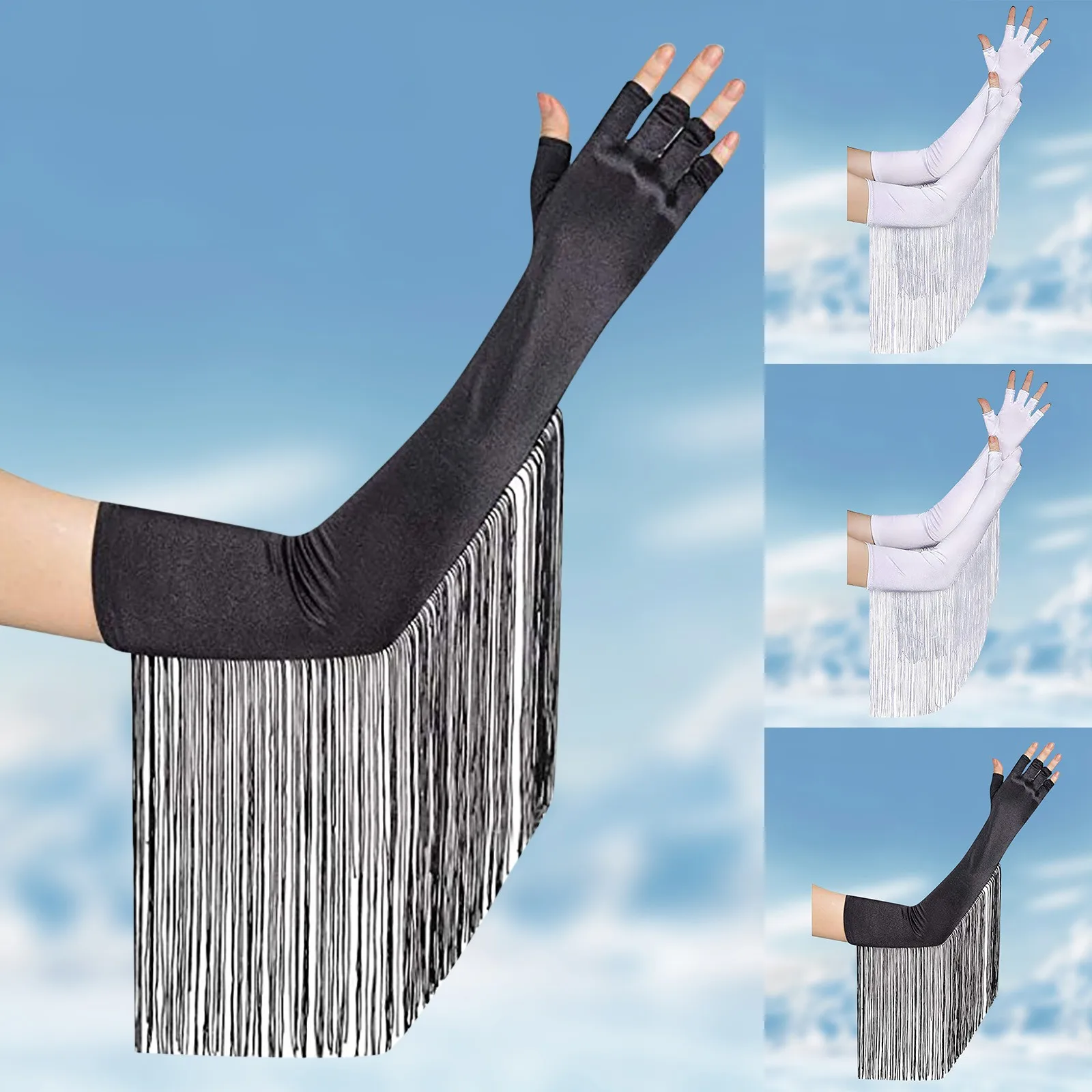 Gants demi-doigt à pampilles pour dames, gants vintage, longs, spectacle d’opéra, isotChim2023, gants de coude pour femmes, mascarade, mariages