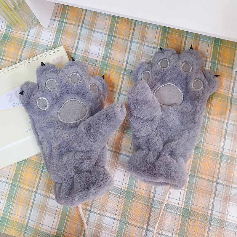 Gants d'hiver en peluche pour femmes, patte de paume d'ours, animaux, patte de chat moelleuse, doigt complet, garde au chaud, jolis mitaines en fourrure douce |