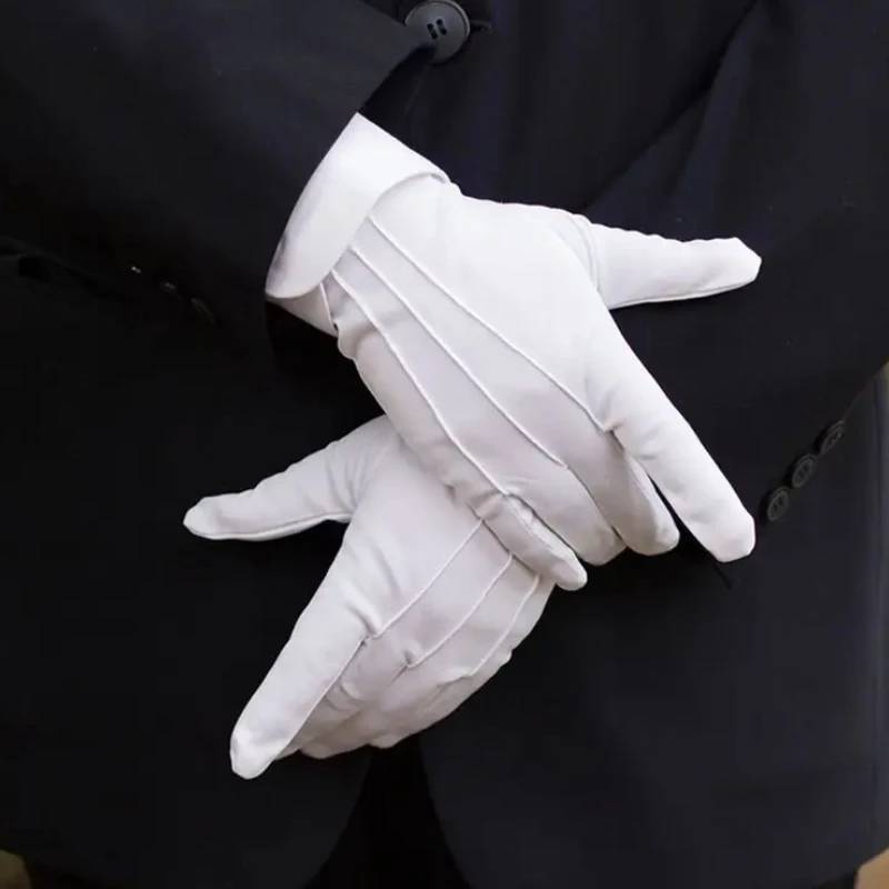 Gants en coton blanc pour hommes, uniforme de smoking formel, garde d'honneur, Costume de cérémonie de défilé, Cosplay, pièce de monnaie, bijoux, gants de majordome |