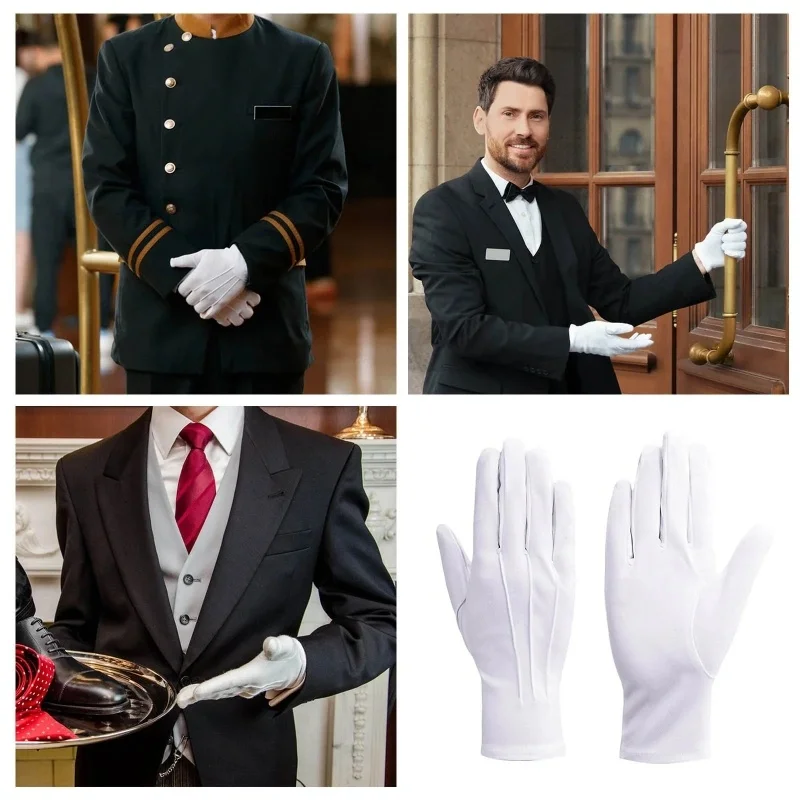 Gants en coton blanc pour hommes, uniforme de smoking formel, garde d'honneur, défilé, Costume de cérémonie, Cosplay, pièce de monnaie, bijoux, gant de majordome |