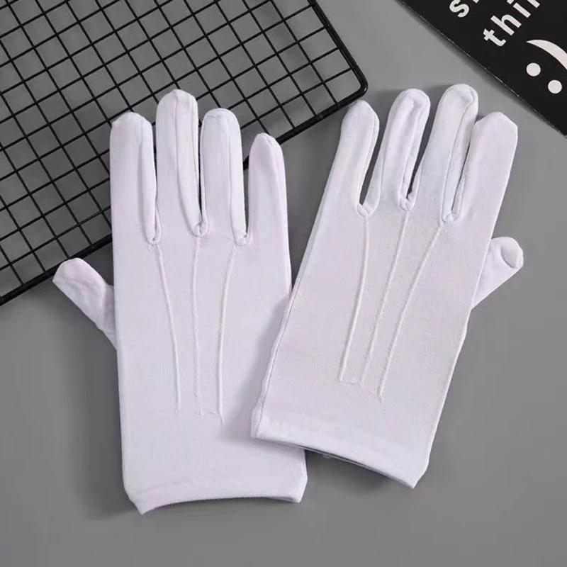Gants en coton blanc pour hommes, uniforme de smoking formel, mitaines de garde d'honneur, Costume de cérémonie de défilé, Cosplay, pièce de monnaie, bijoux, gants de majordome |