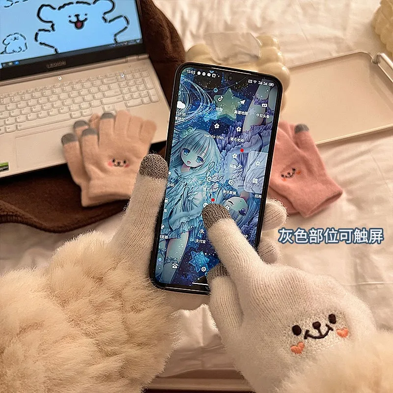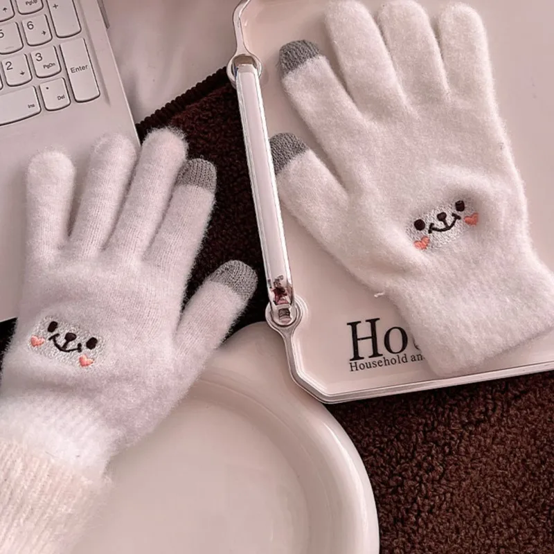 Gants en molleton à cinq doigts pour femmes, gants en coton confortables, écran tactile, résistant, document, degré, mode, mignon, automne, hiver |