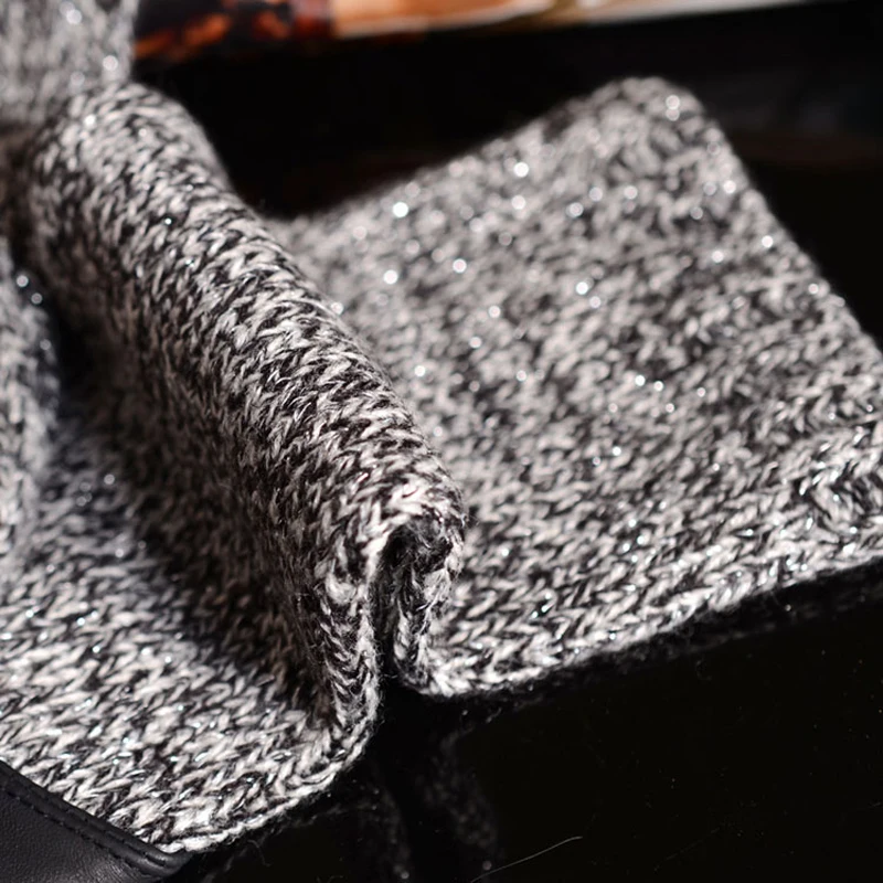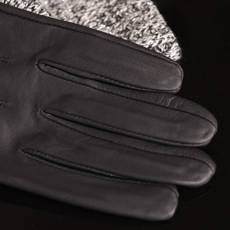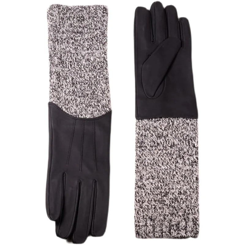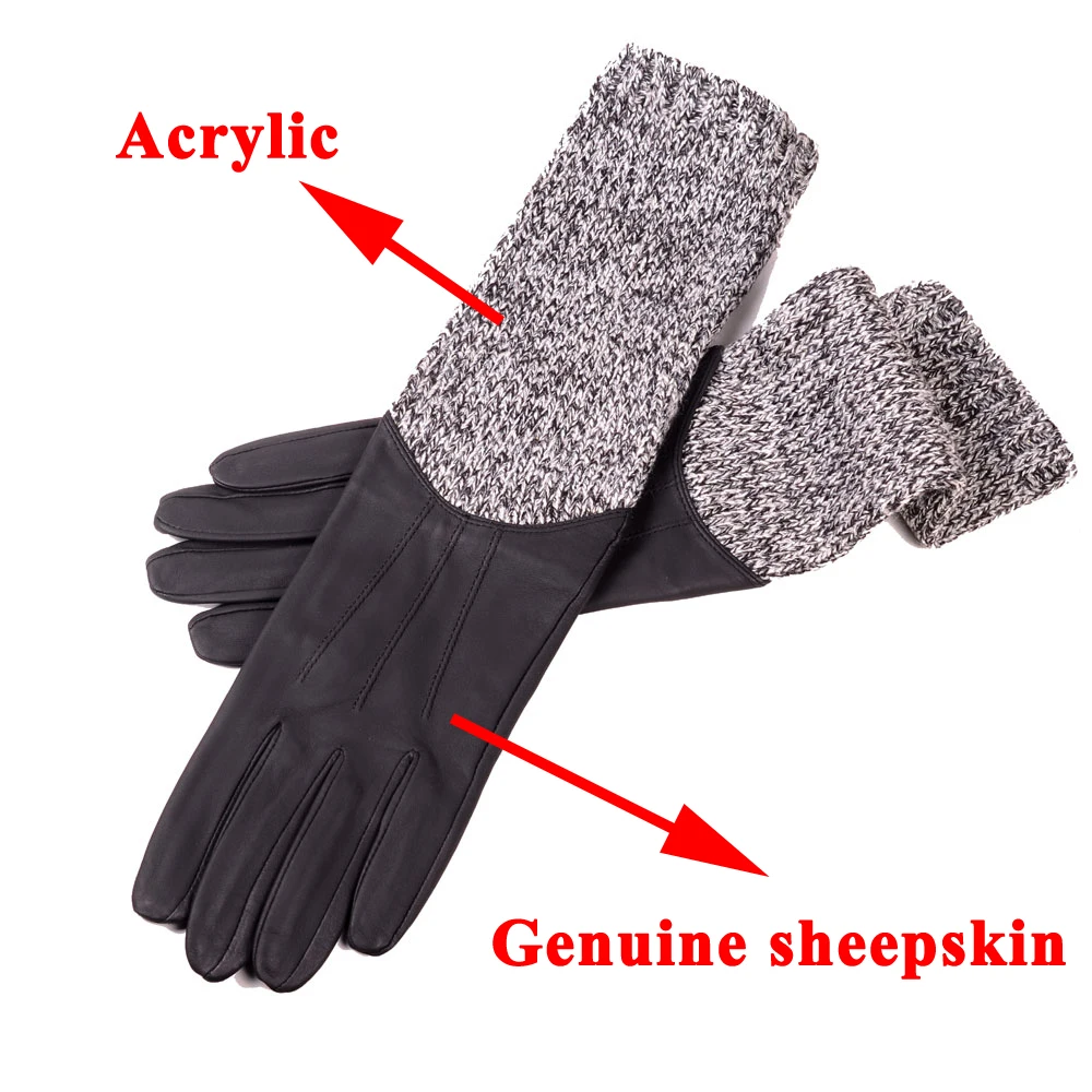 Gants longs de 40 cm pour femmes, en cuir véritable tricoté, Patchwork, élégant, Luvas Mujer, hiver, mancherons, Mitaine Gemme |