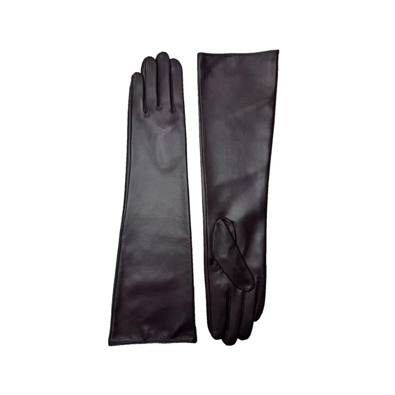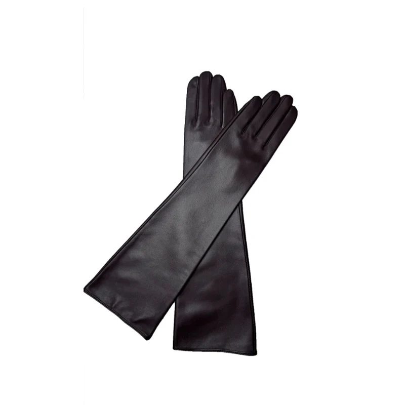 Gants longs en cuir véritable de 45CM, en peau de mouton véritable, doublure en soie fine, gants longs coudés, mode hiver pour femmes |