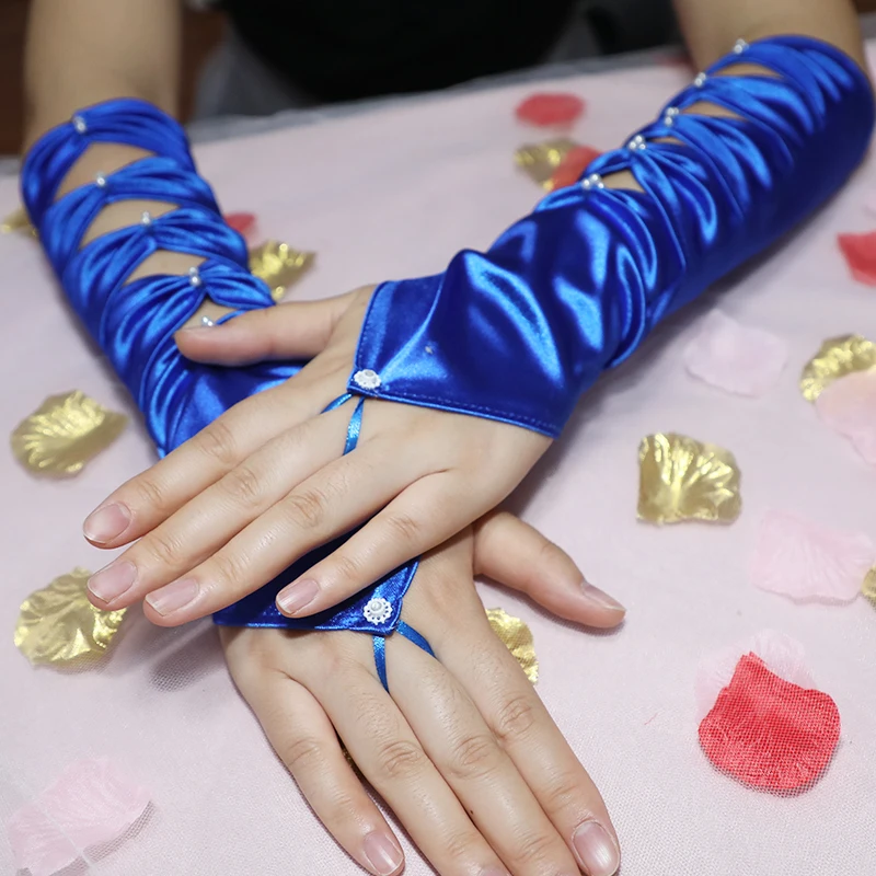 Gants Longs et artificiel astiques Plissés en Satin Vert et Bleu avec Nministériels d Papillon, pour Patients de Mariage, Coude, Sans Doigts, pour Soirée, Bal de Promo, pour Fille |