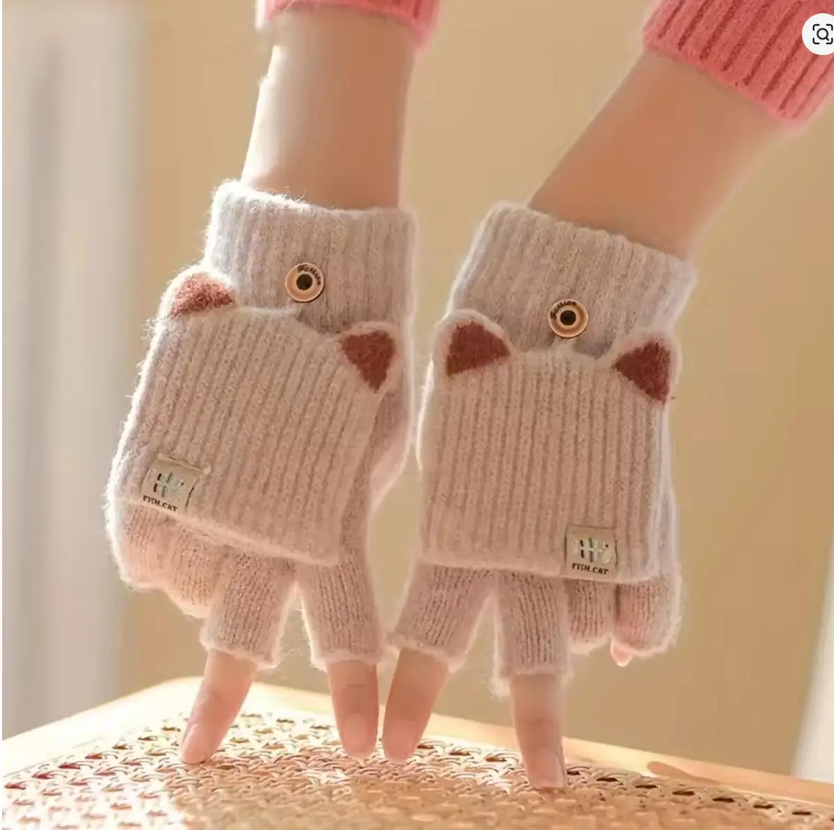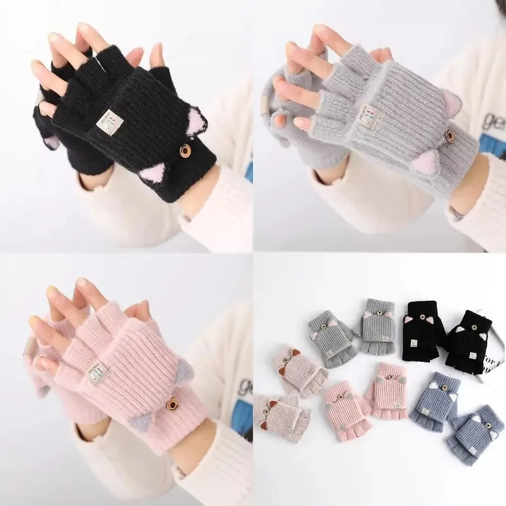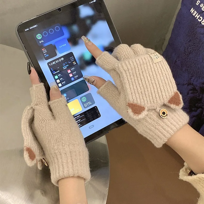 Gants tricotés d'hiver pour femmes, mitaines en laine épaisses doublées de polaire, jolis gants sans doigts à rabat pour le cyclisme et la chaleur |