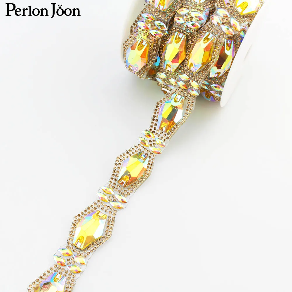 Garniture en strass cristal AB bleu AB, 1 mètre, grand ruban de strass, pour repassage, chaussures, sacs, accessoires de décoration |