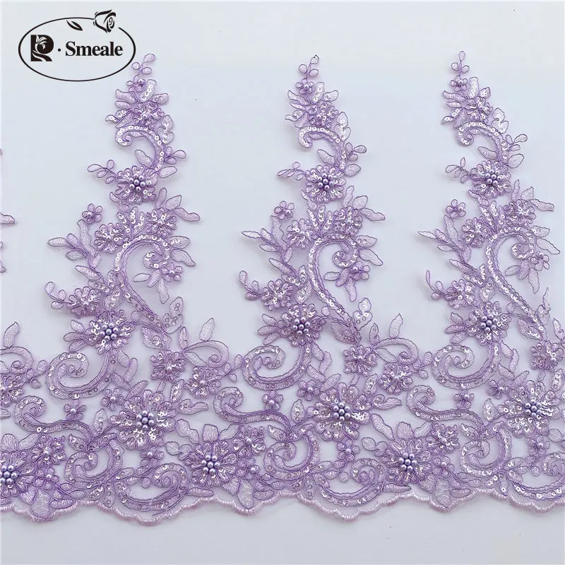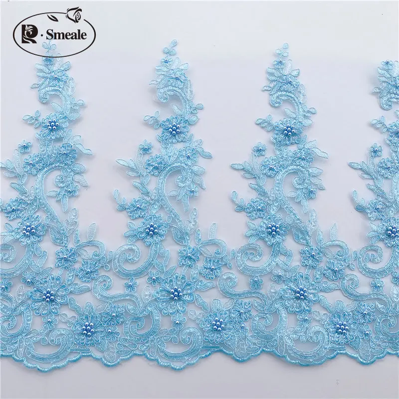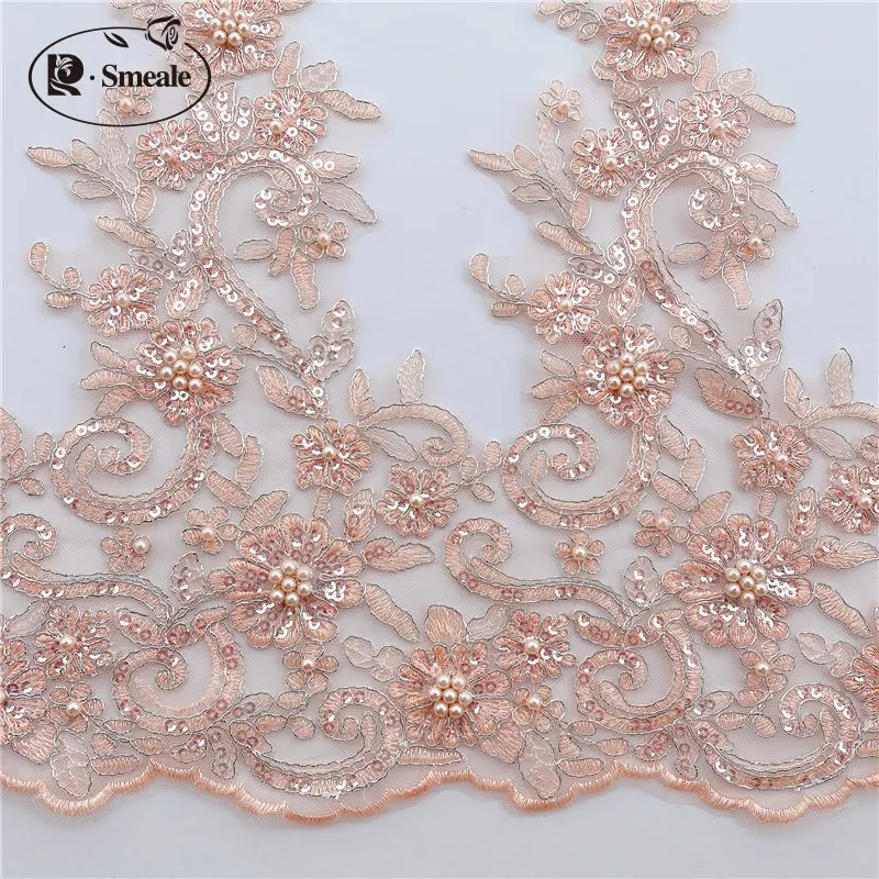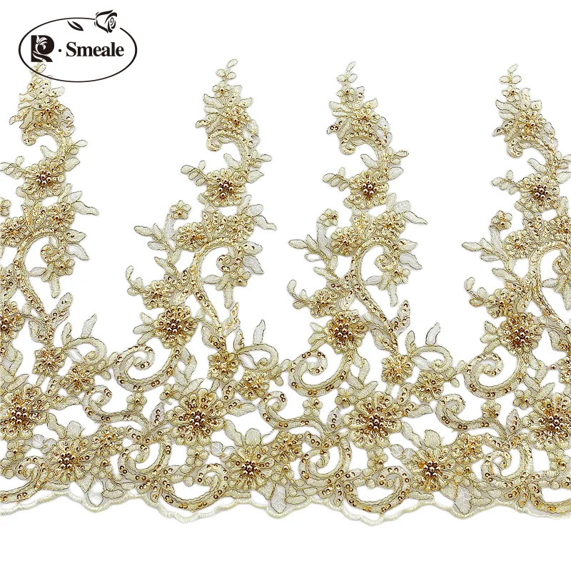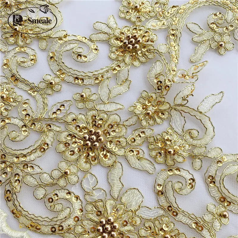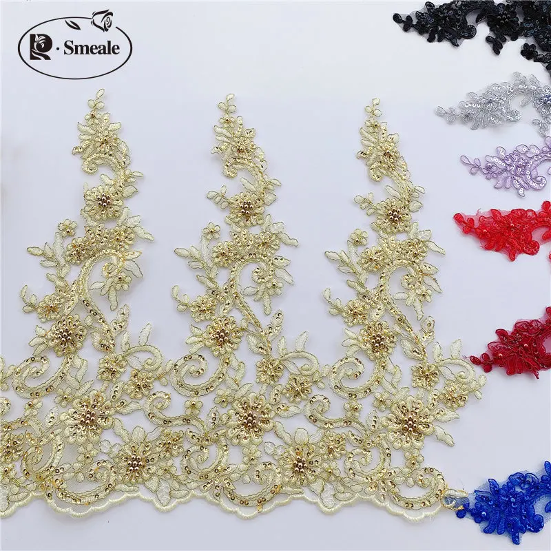 Garniture en tissu de dentelle perlée à paillettes, décoration de bricolage d'accessoires de jupe, robe de mariée, hauteur de 43cm, RS2448, 14 couleurs |