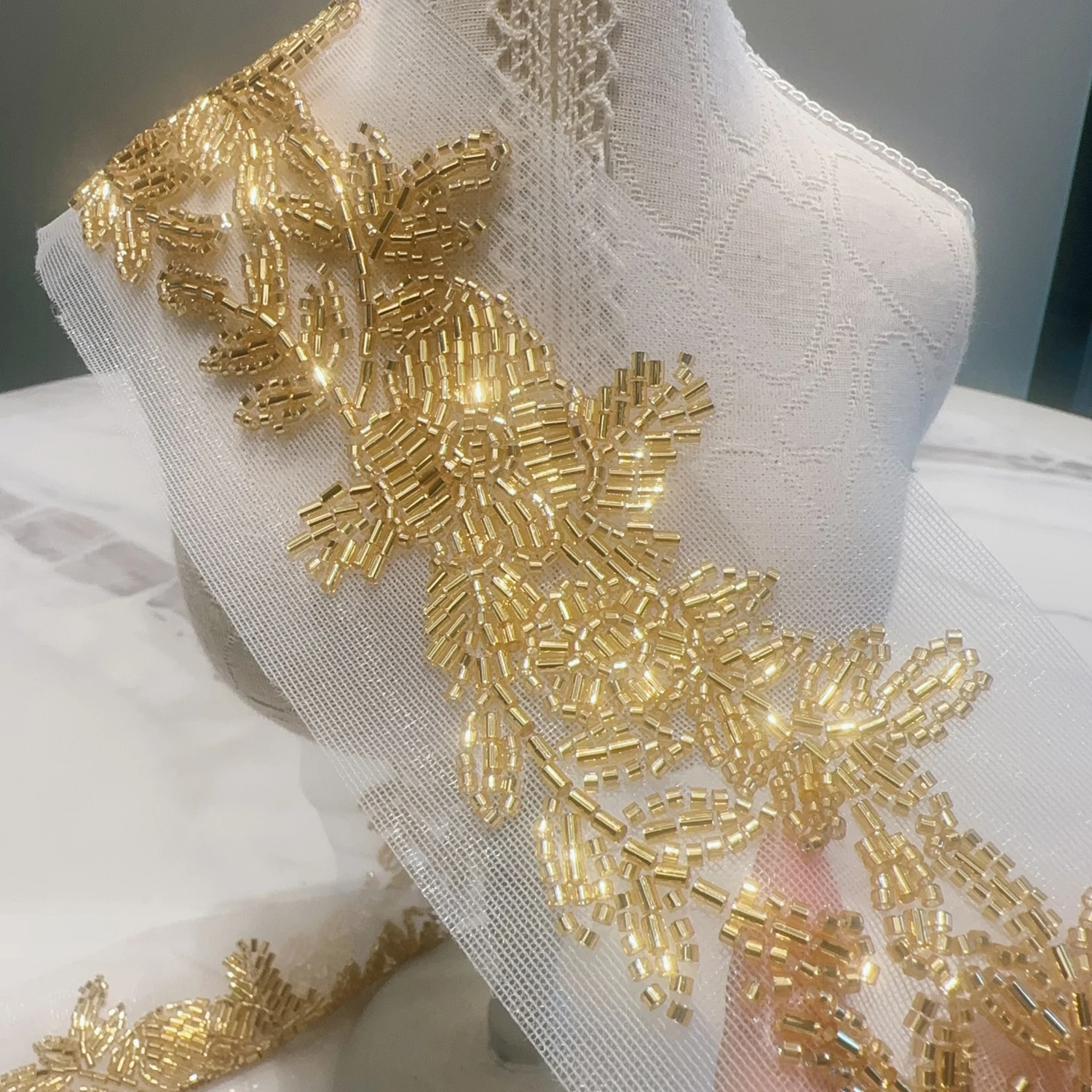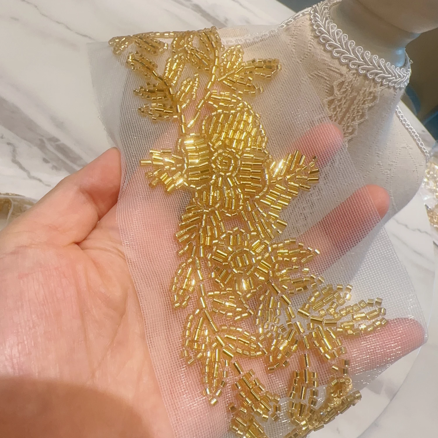 gold lace trim: gold beads lace