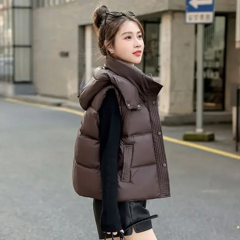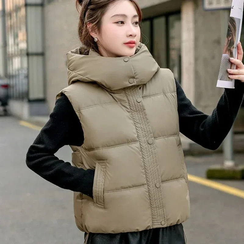 Gilet à Capuche Matelassé Solide pour Femme, Élégant, Style Coréen, observateur, Rembourré, Jeune, Nouvelle Collection Automne