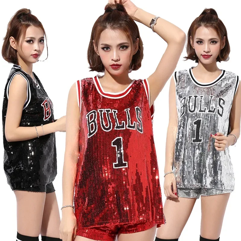 Gilet à paillettes pour femmes, Costume de danse Jazz, Hip Hop, vêtements de danse modernes, décor en métal, mélange de Polyester, vêtements d’entraînement décontractés