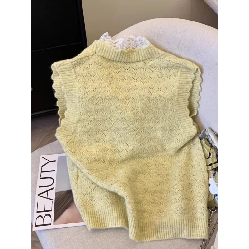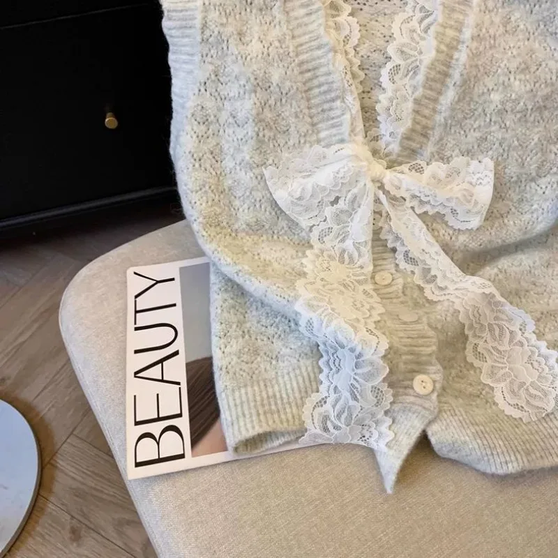 Gilet avec nœud en dentelle pour femme, pull superposé extérieur, nouvelle collection automne 2025 |