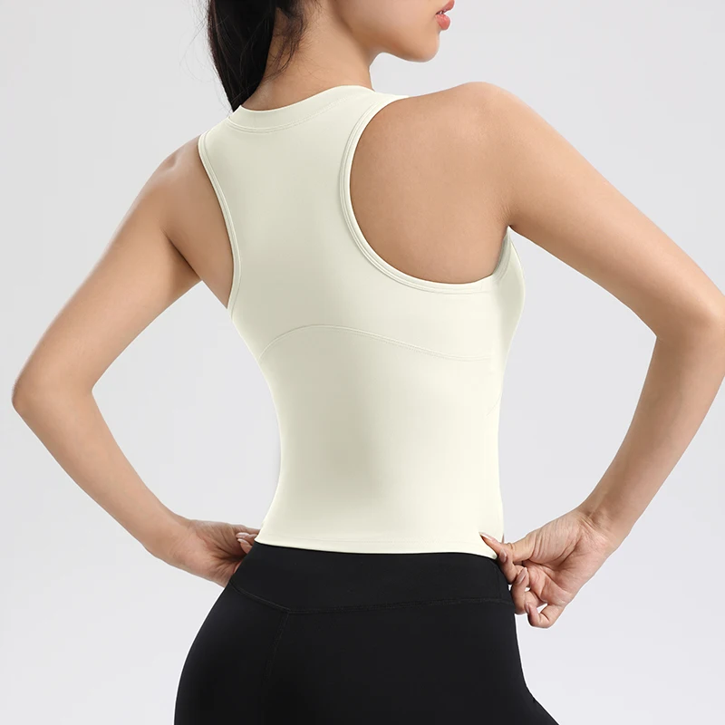 "Ce gilet de sport est parfait pour mes séances d'entraînement ! La coupe ajustée est très confortable et le tissu respirant me garde au sec pendant mes efforts. Le soutien-gorge intégré est vraiment efficace pour absorber les chocs. Seul petit bémol, le dos n'est pas aussi élégant que je l'aurais souhaité, mais cela n'entache en rien la qualité globale du produit. Je le recommande sans hésiter aux sportives à la recherche d'un équipement performant et durable."