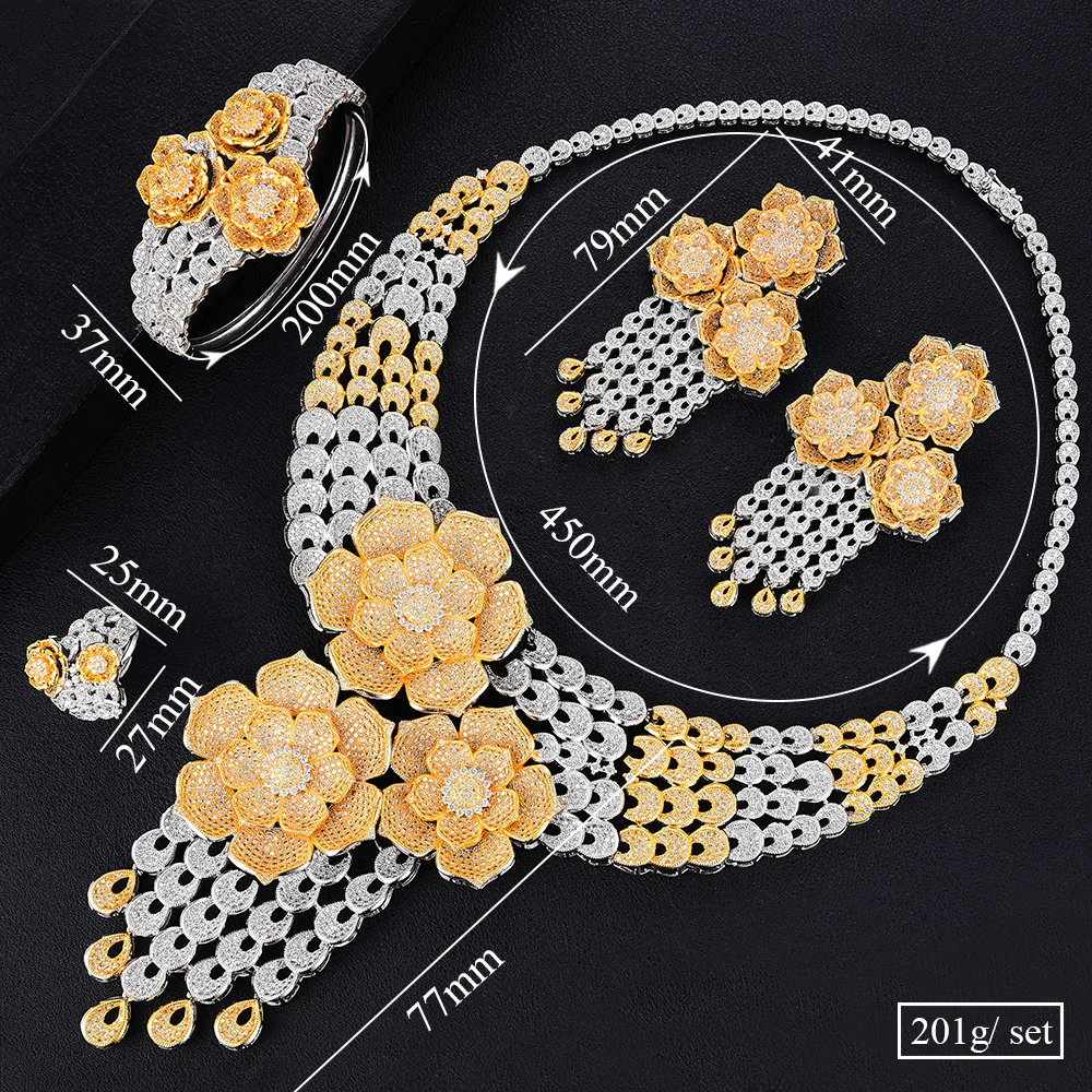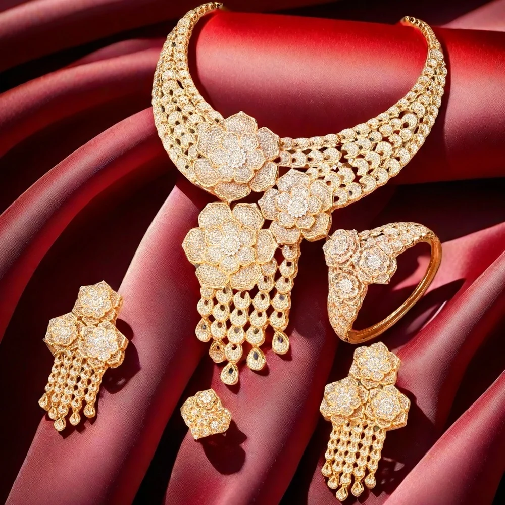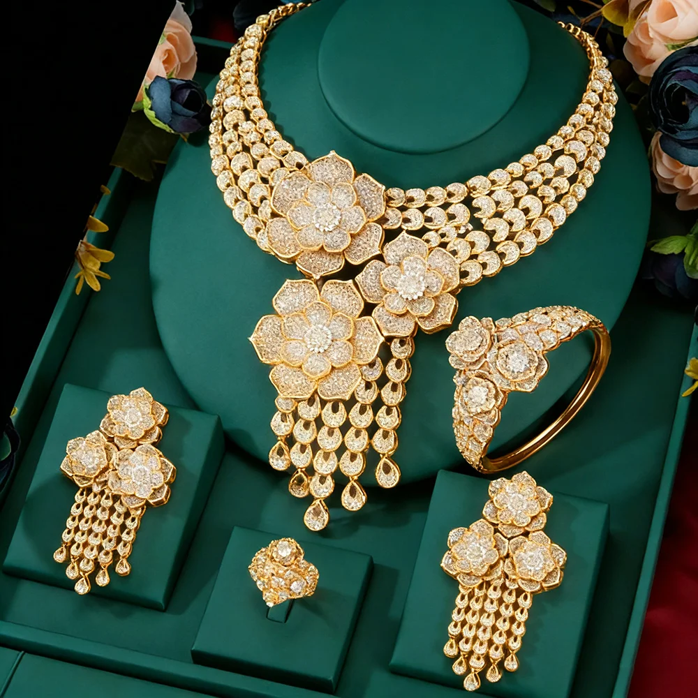 GODKI italie 18K plaqué or Rose Flowewr ensembles de bijoux collier ensemble d’accessoires pour femmes grand pendentif ensemble de bijoux en Zircon complet