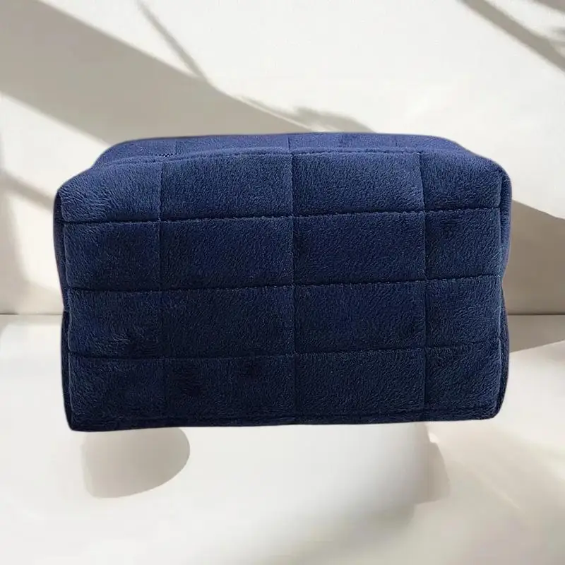 Grand organisateur de maquillage Chic en fourrure pour femmes, sac à cosmétiques à fermeture éclair de couleur unie, pochette de lavage de toilette de voyage en peluche, porte-stylo