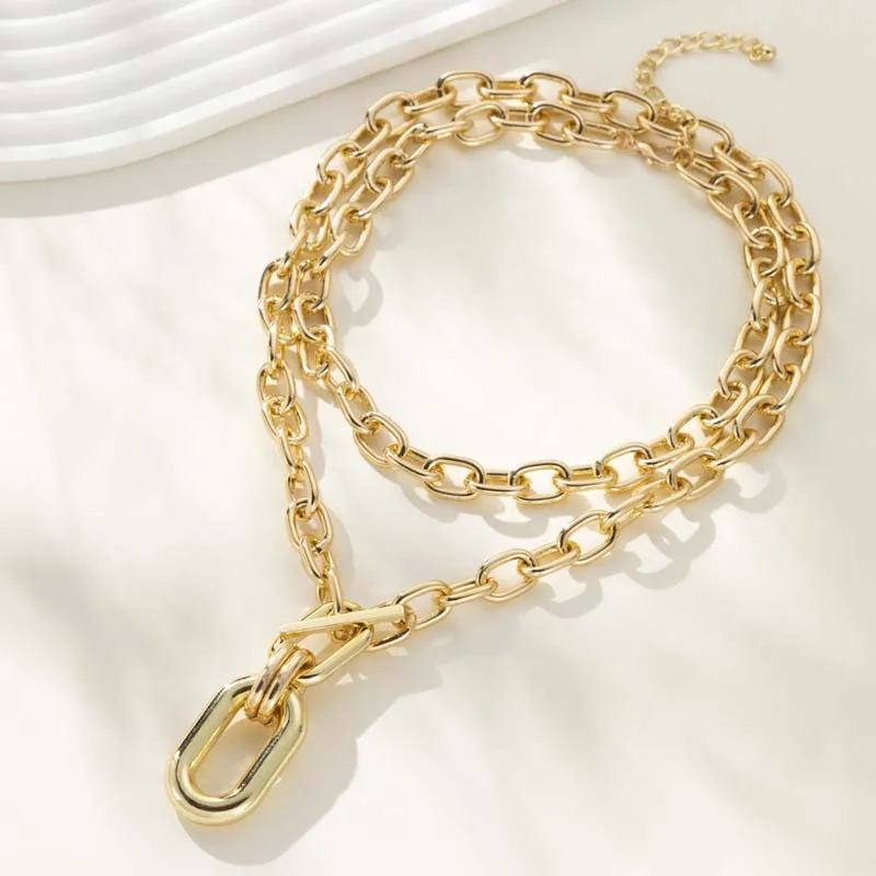 Grand pendentif elliptique couleur or exagéré pour femmes, Punk Hip Hop, chaîne épaisse en métal, boucle OT, bijoux cadeau