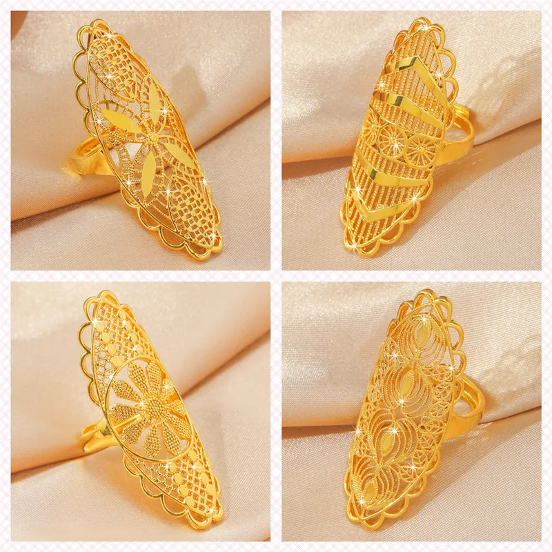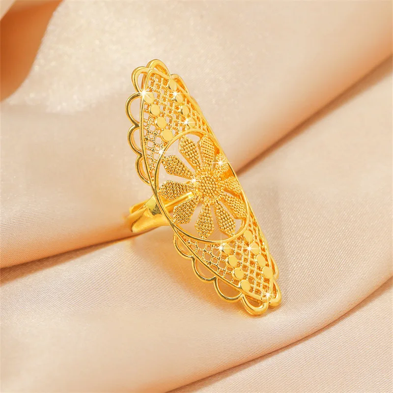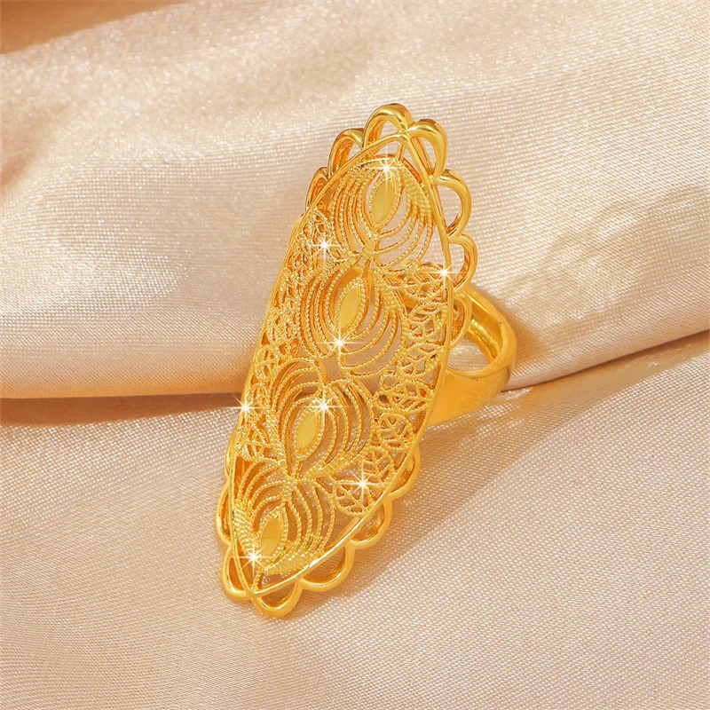 Grande bague exagérée en or pour femme, document élégant, mariée, anniversaire, mariage, fiançailles, jour de Léon, bijoux fins, cadeaux |