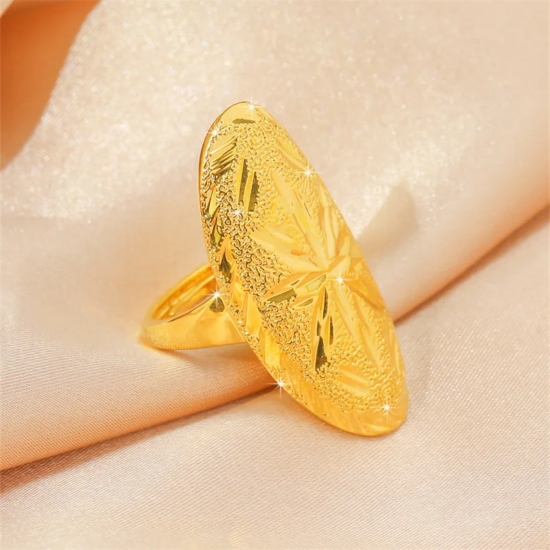 Grande bague exagérée en or pour femme, document élégant, mariée, anniversaire, mariage, fiançailles, jour de Léon, bijoux fins, cadeaux