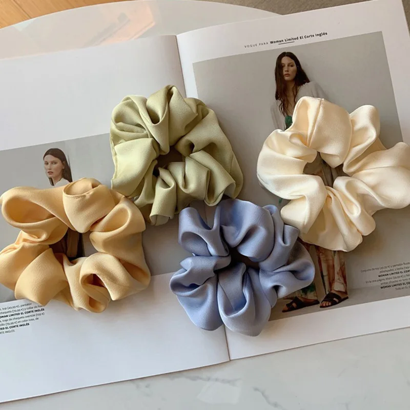Grands chouchous élastiques en Satin de soie, bandes de cheveux en caoutchouc pour femmes et filles, bandeau solide, support queue de cheval, attaches pour cheveux, accessoires de mode |