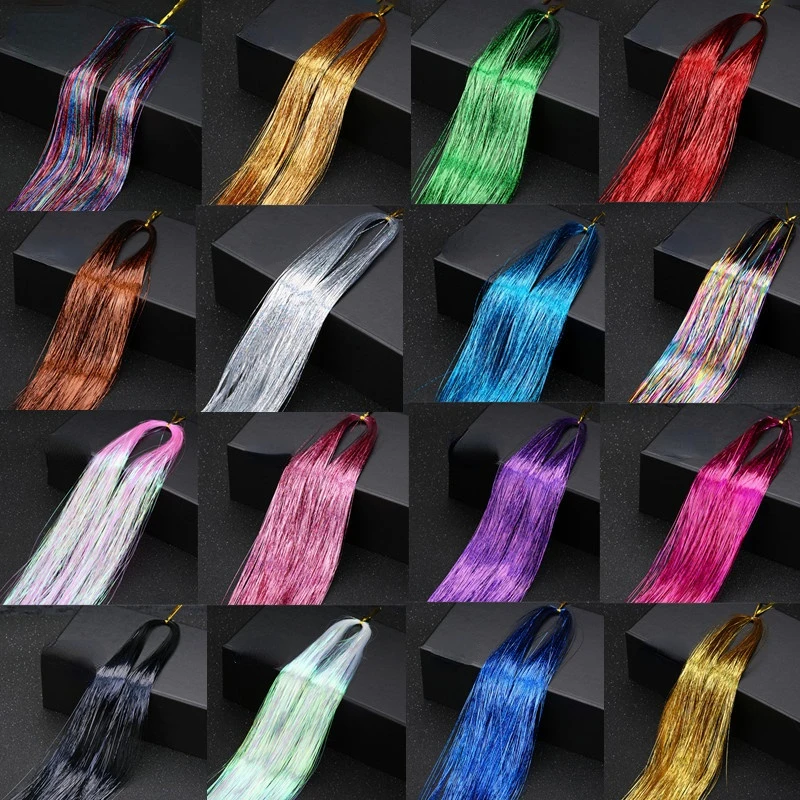 Guirlandes de cheveux brillantes et scintillantes, brins arc-en-ciel éblouissent les femmes Hippie pour tresser la coiffure, Extensions de faux cheveux, bandes scintillantes décoratives