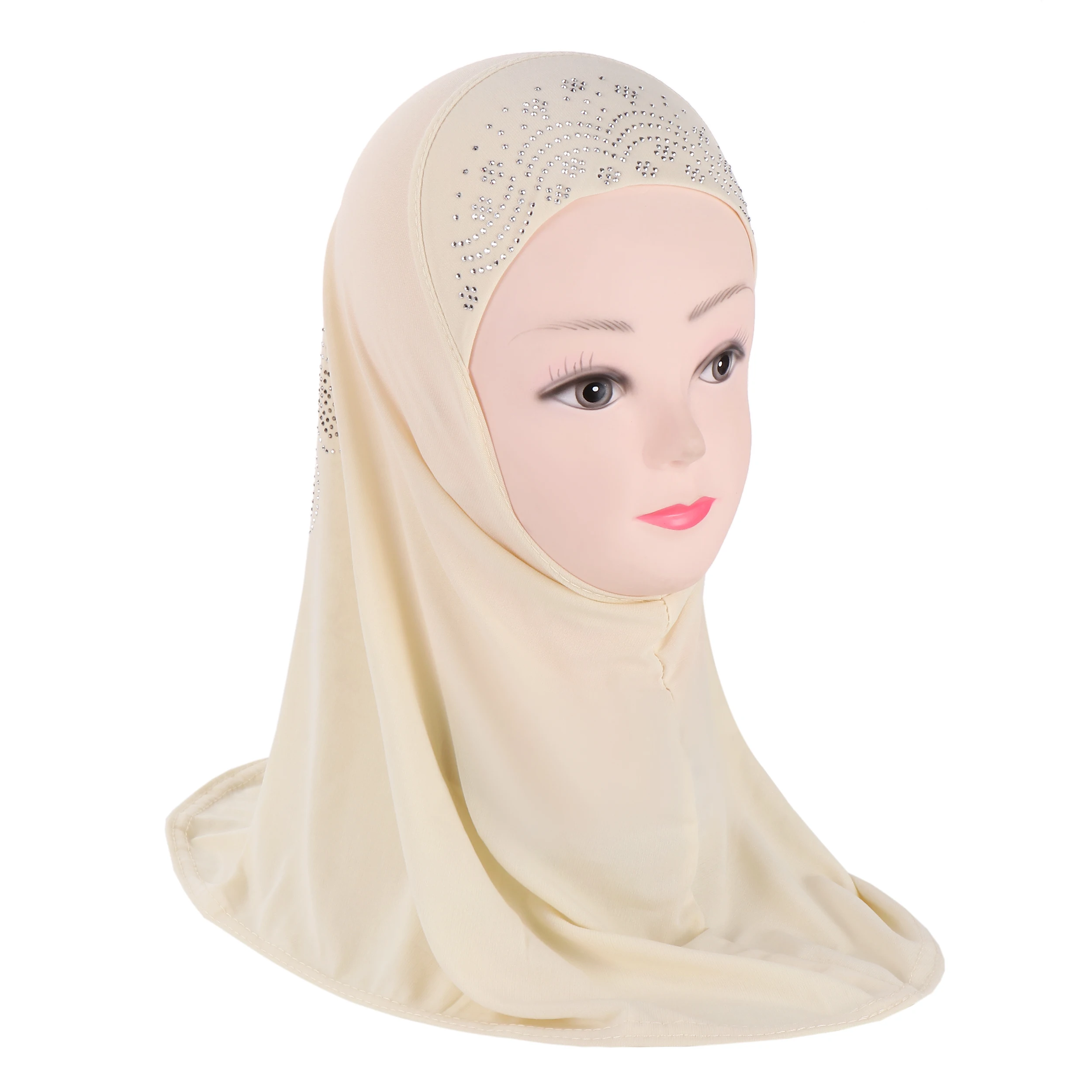 H360 mignon Simple petite fille Hijab avec strass mignon écharpe chapeaux bébé casquettes peuvent s'adapter aux filles de 2 à 6 ans |