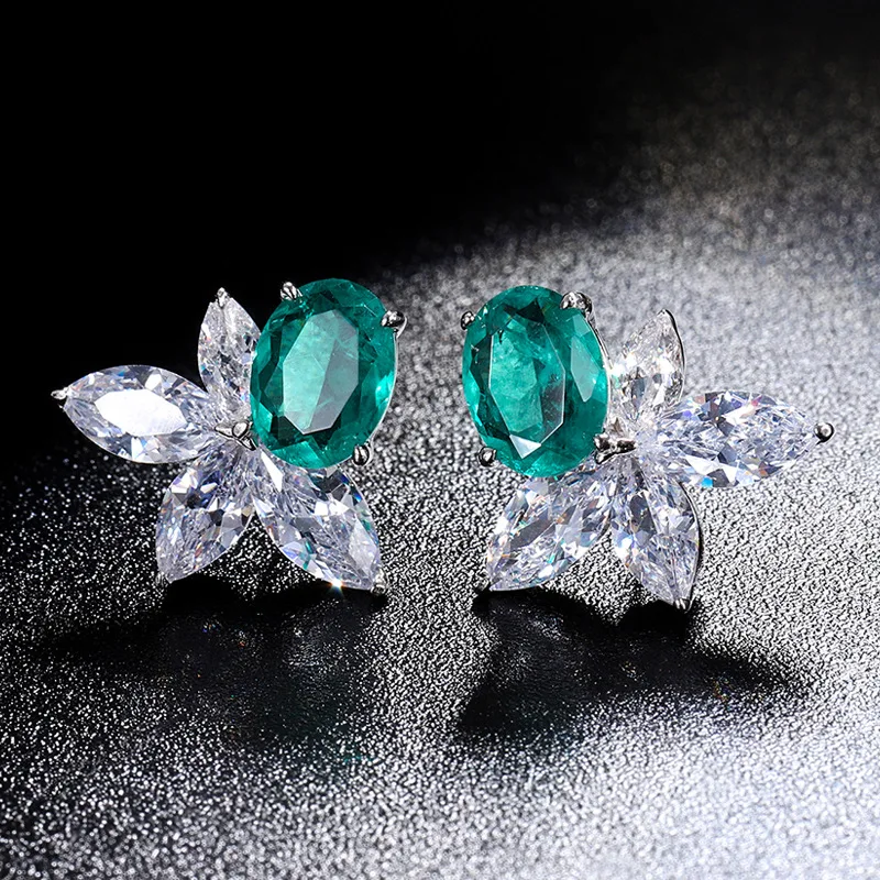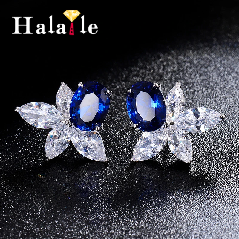 Halaile S925 argent Sterling Zircon bijoux haute teneur en carbone diamant polychrome boucles d'oreilles à la mode bijoux fins femmes cadeau élégant |