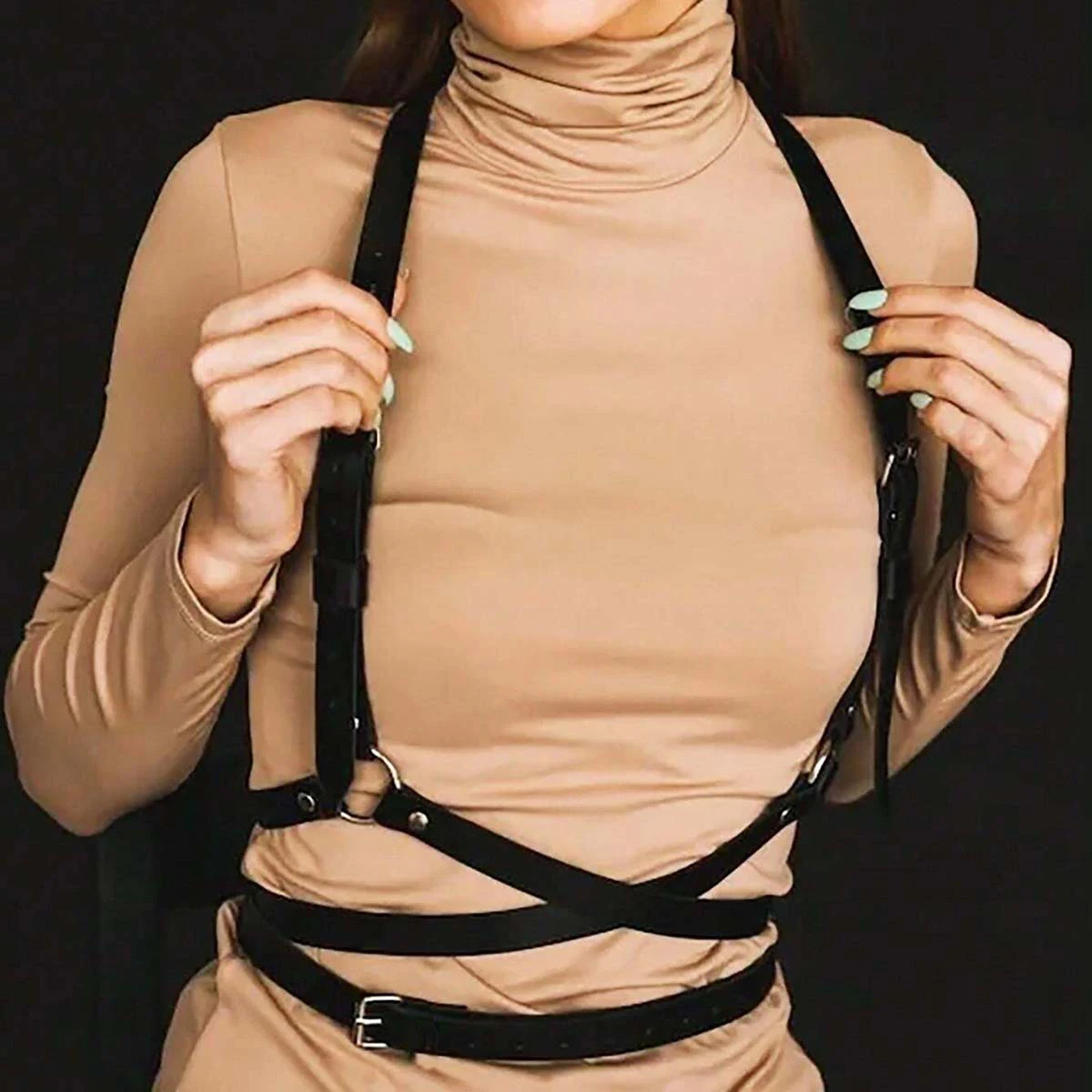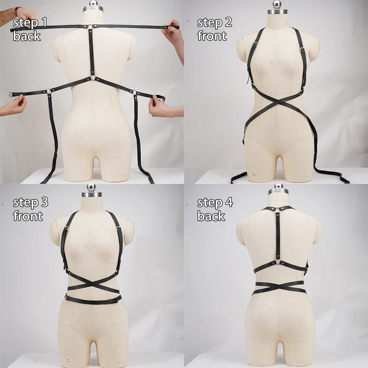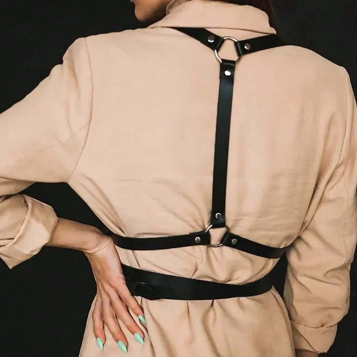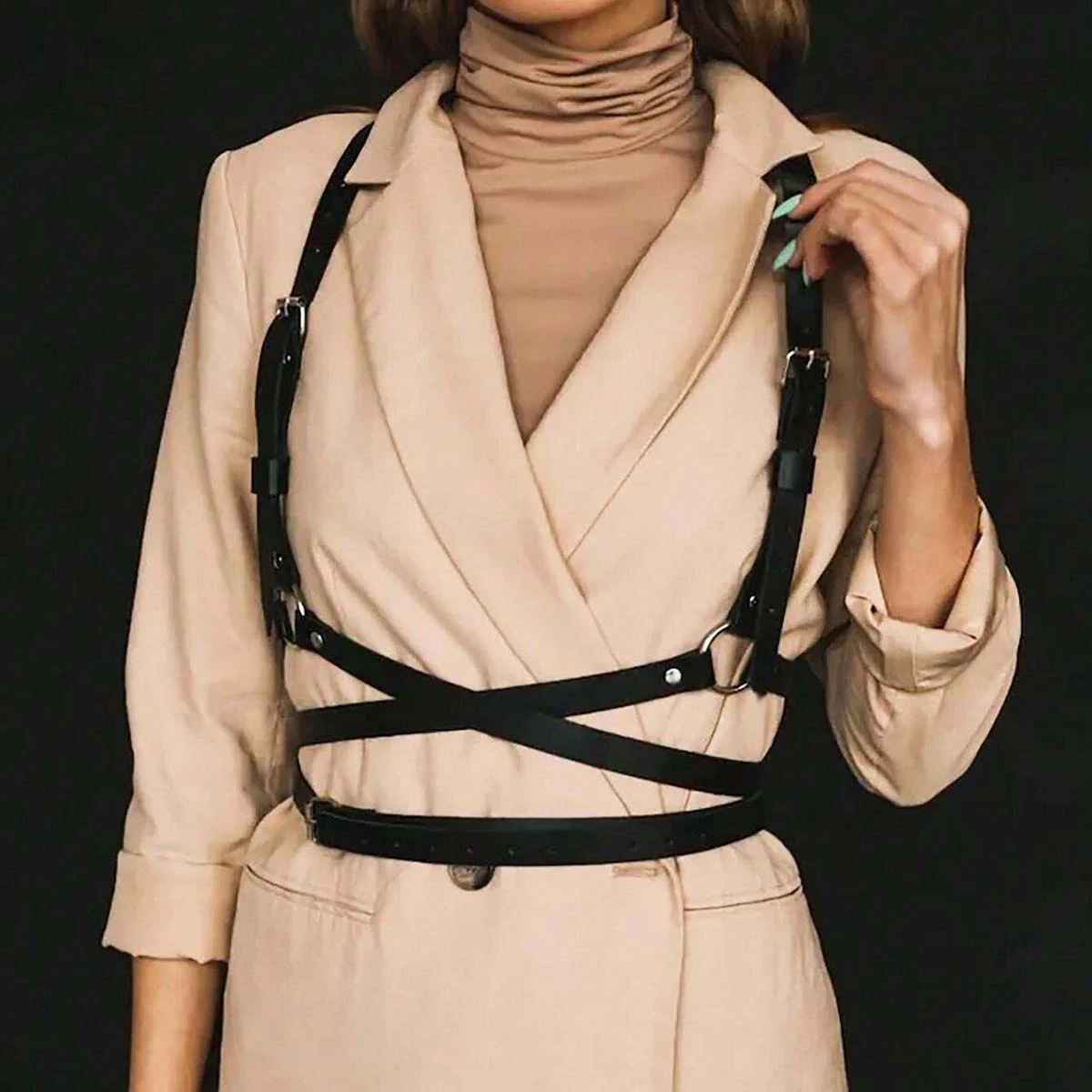 Harnais de corps en cuir Pu à bretelles réglables, soutien-gorge rétro pour femmes, Corset de Bondage, ceinture de taille gothique, jarretelles de décoration