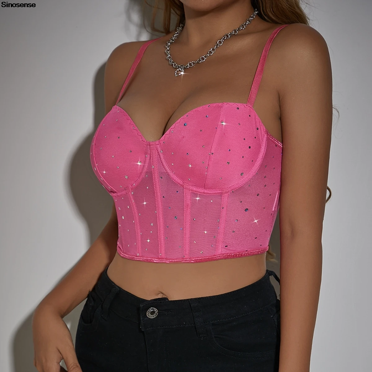 Haut court en maille pour femmes, couture, décor à paillettes, Corset plus mince, Bustier, Streetwear d’été, sortie Y2K, vêtements de boîte de nuit, hauts de fête