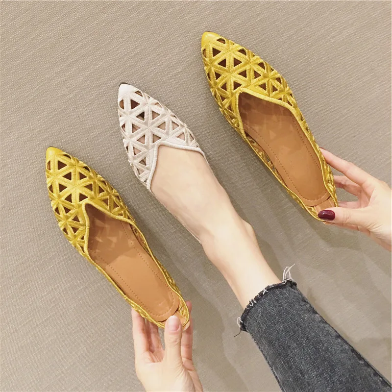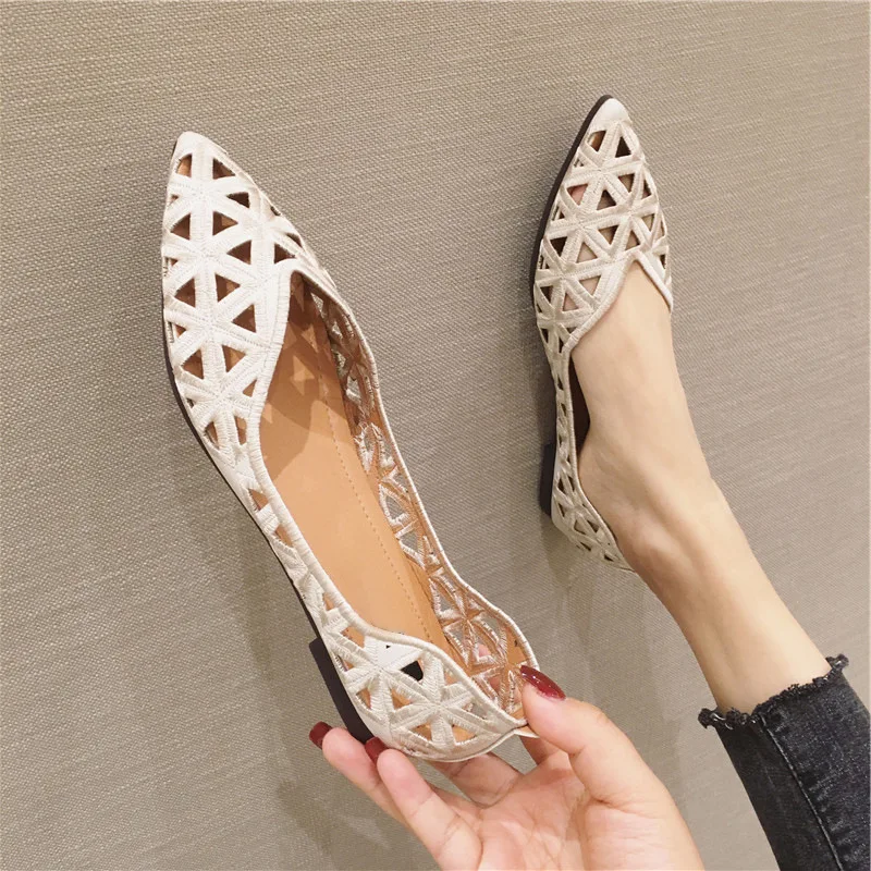 Haute qualité femmes chaussures plates mode femmes chaussures de Ballet creux respirant confortable chaussures décontractées élégant bout pointu sandales |