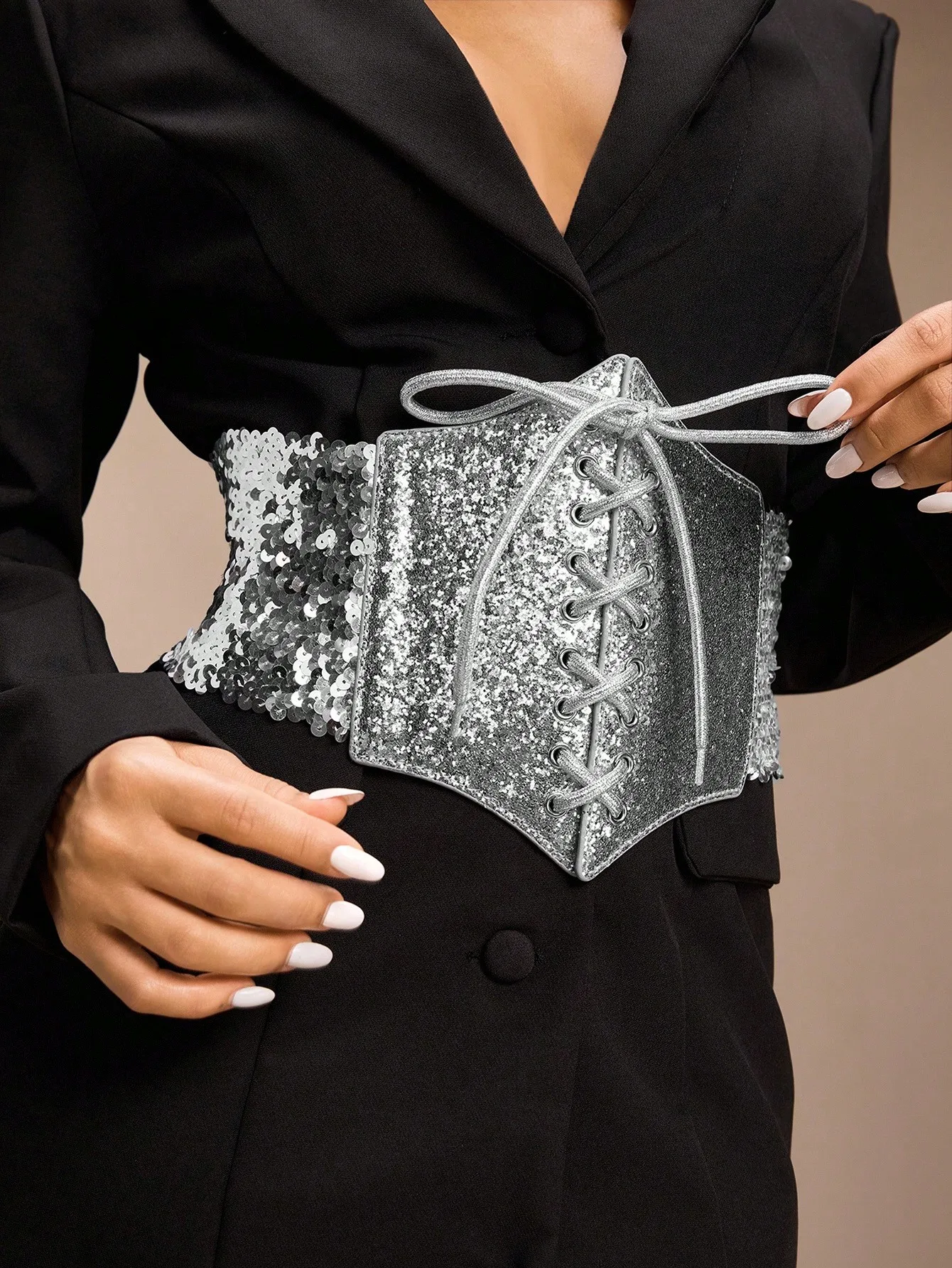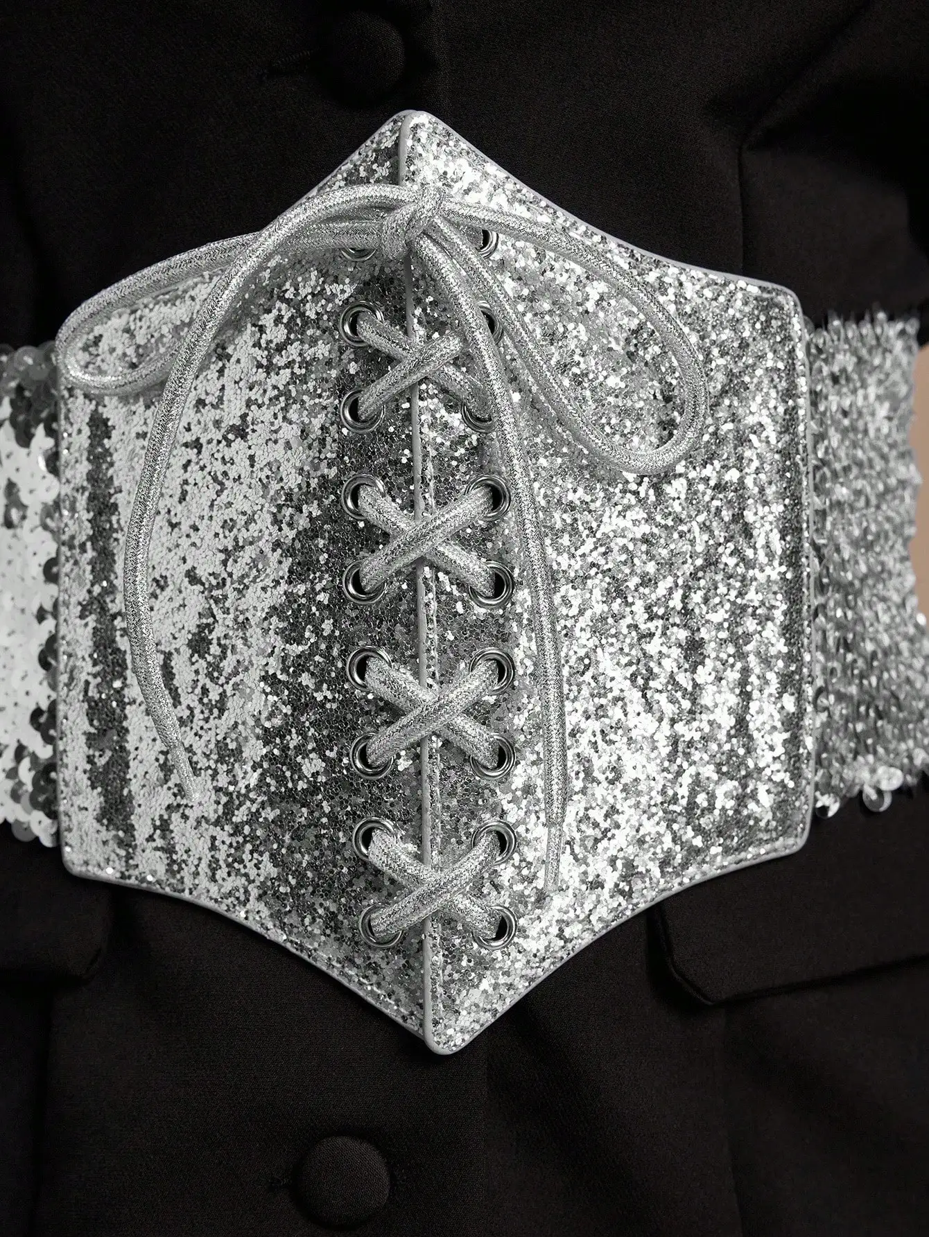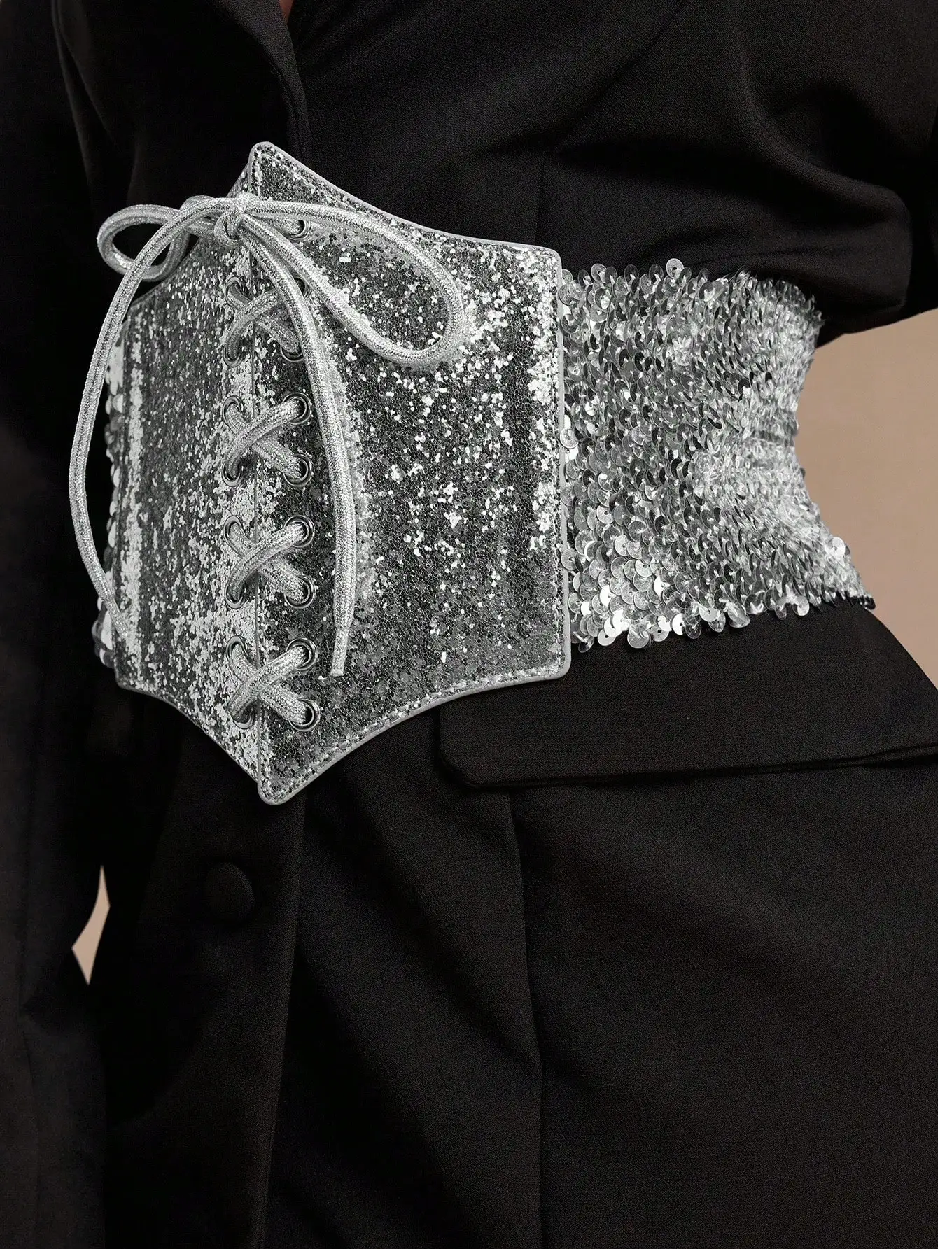 HERSHINE – ceinture élastique à paillettes argentées pour femmes, 1 pièce, tendance, élégante, sexy, accessoires de performance, cadeau de noël |