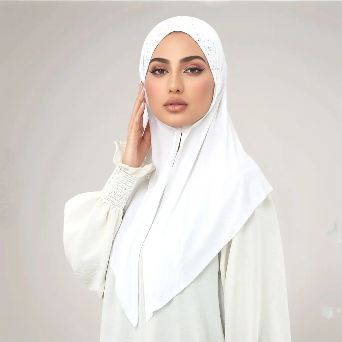 "Ce hijab est juste parfait pour moi ! La matière est si douce et confortable, idéale pour le porter au quotidien. Les détails pailletés lui donnent vraiment un bel effet scintillant, sans être trop tape-à-l'œil. Le seul bémol est que la teinte beige est un peu plus claire que sur la photo, mais cela ne me dérange pas. Dans l'ensemble, je suis totalement conquise et je le recommande !"