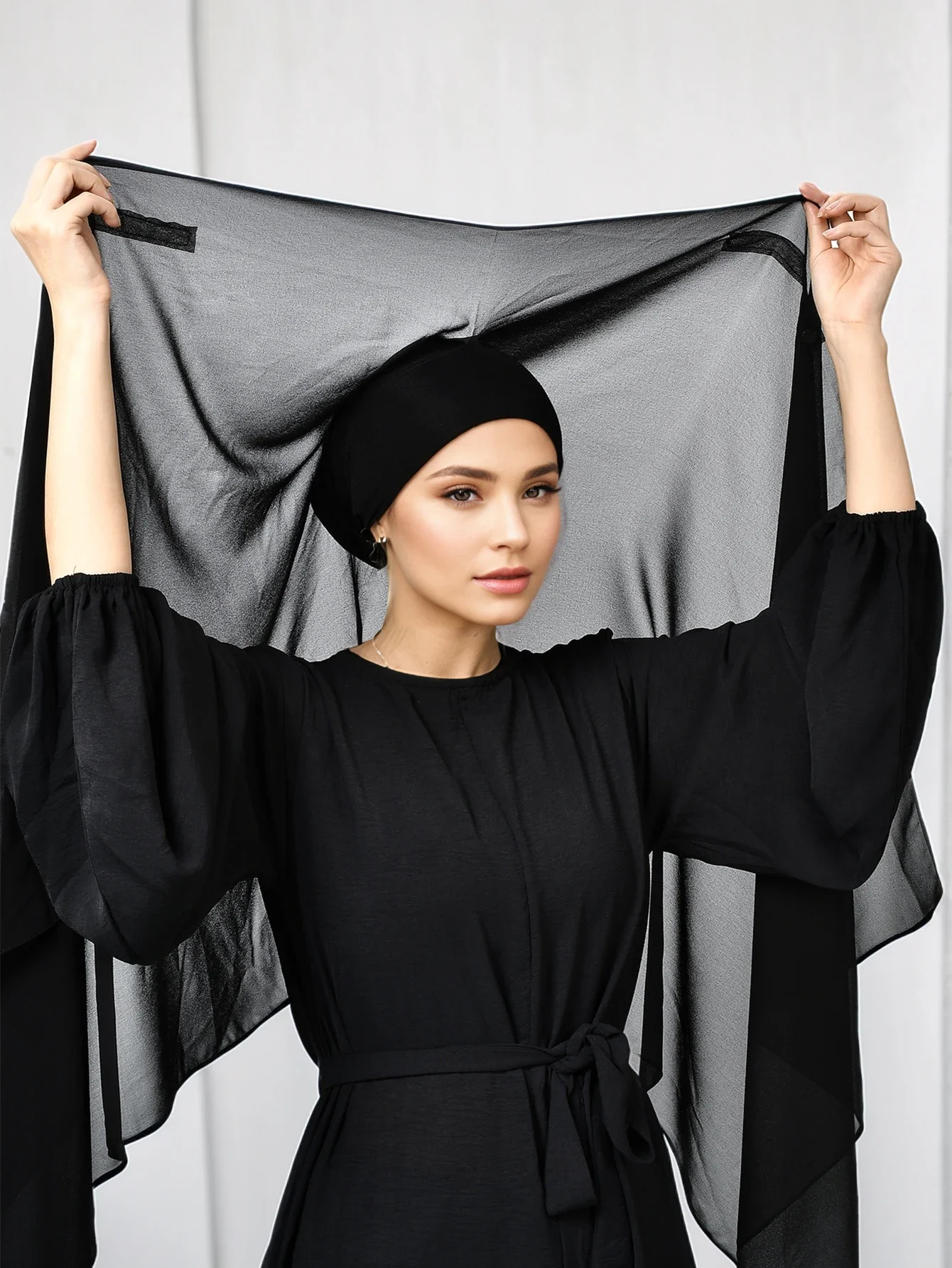 - Hijab instantané en mousseline de soie, matériau léger et doux