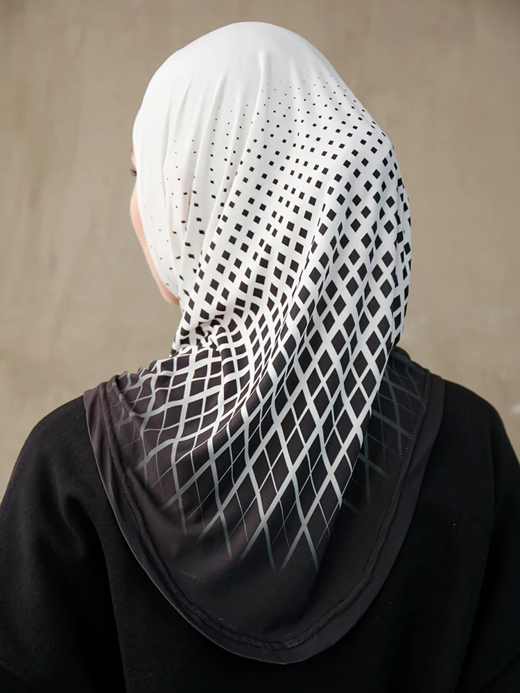 "Ce hijab sportif est tout simplement fantastique ! La matière est de très bonne qualité, très douce et confortable à porter. J'adore le motif géométrique, il est vraiment élégant et tendance. Seul bémol, le hijab a tendance à se déformer un peu après plusieurs lavages, mais rien de grave. Dans l'ensemble, je suis très satisfaite de mon achat et je le recommande vivement !"