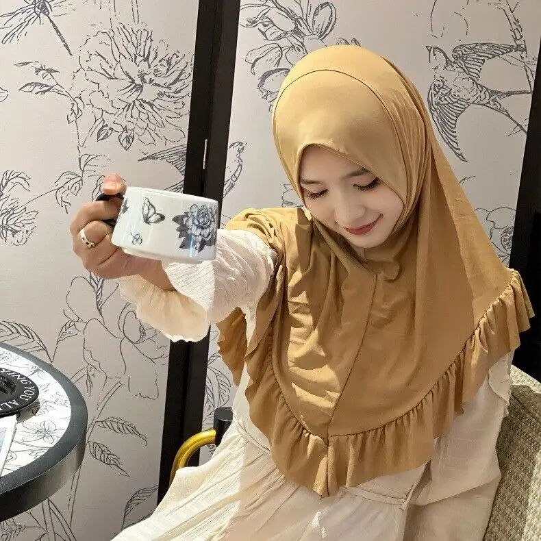 Hijab musulman pour femmes, turban à volants, enveloppes de sauna islamiques, bandeau de sauna arabe, grand tiens imar, écharpe une pièce, châle, document solideHijab musulman pour femmes, turban à volants, enveloppes de sauna islamiques, bandeau de sauna arabe, grand tiens imar, écharpe une pièce, châle, document solide