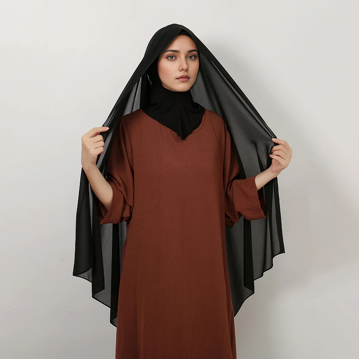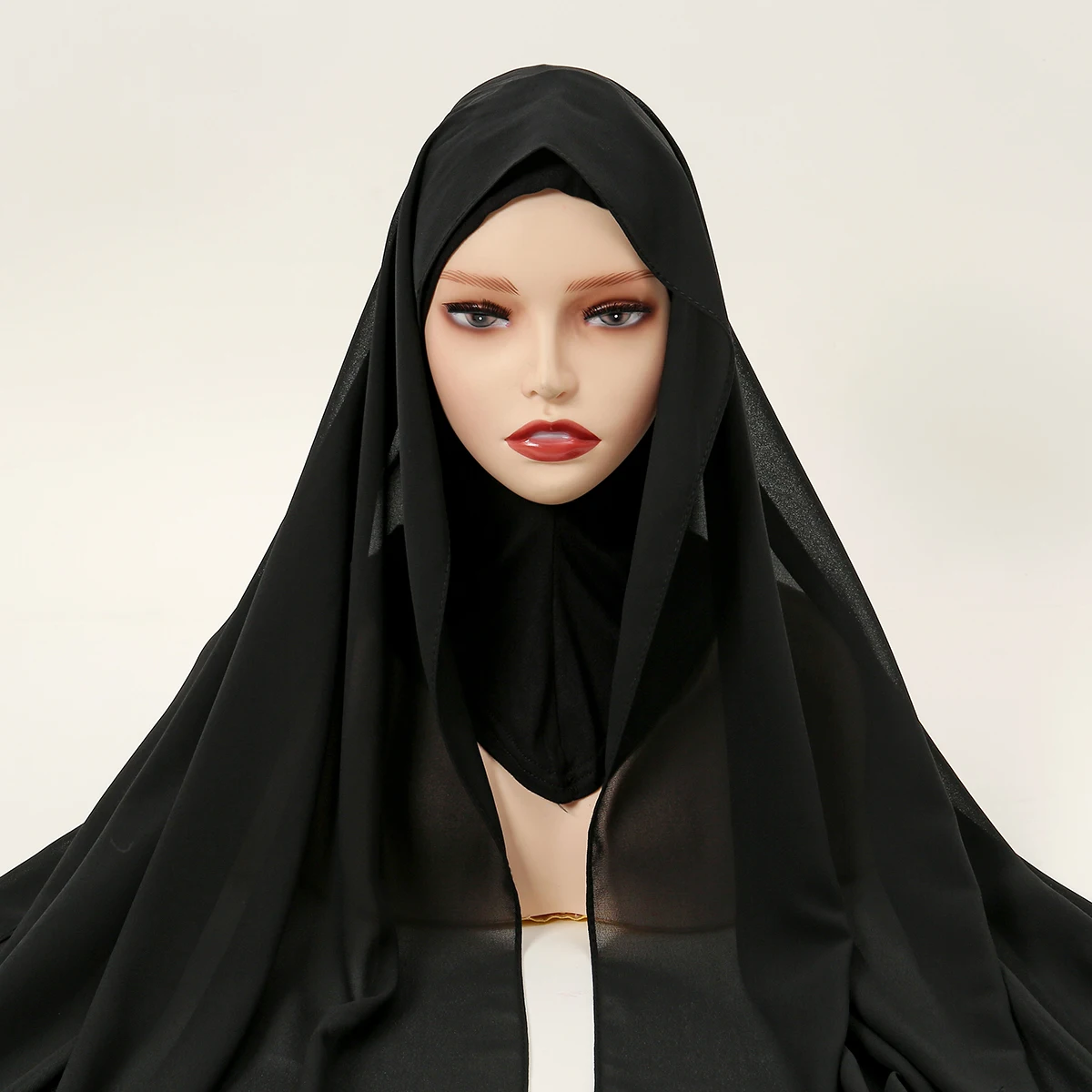 Hijab Niken Mousseline de Soie pour Femme, Bandeau de Sauna Musulman, Bonnet, Long Châle avec Jersey, Sous-Écharpe, Couverture de Cou, Enveloppe de Sauna, Vente en Gros