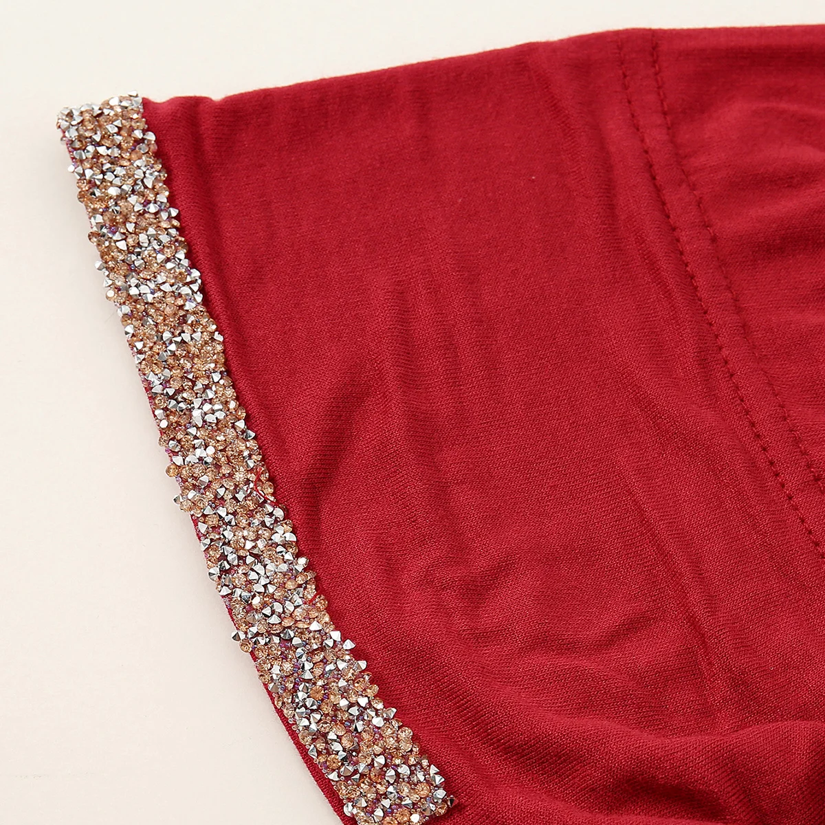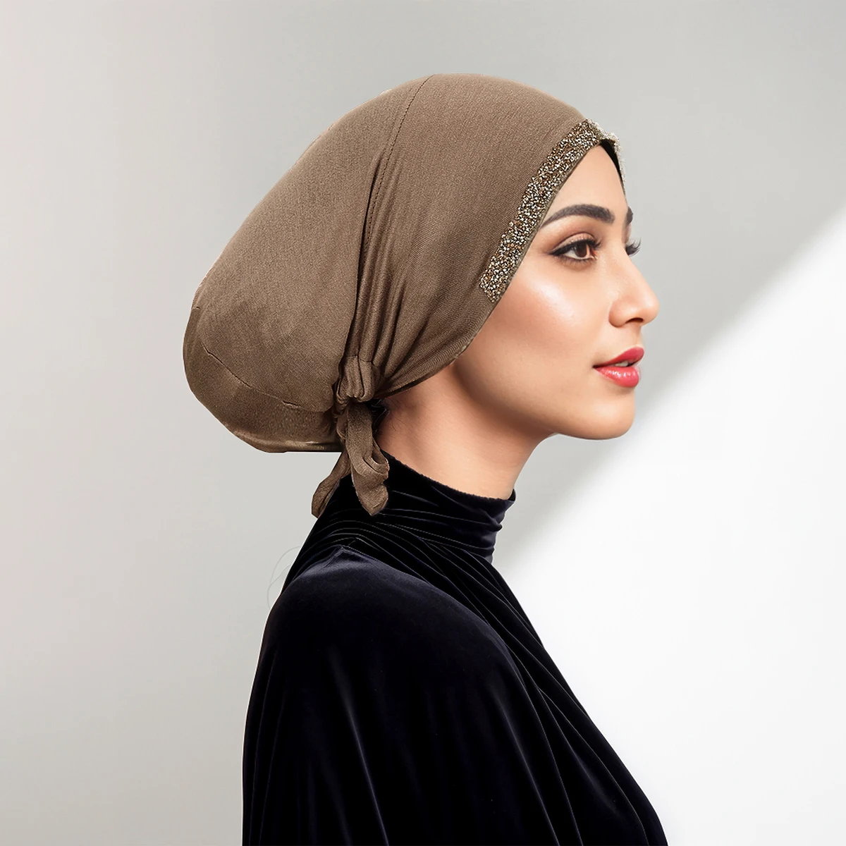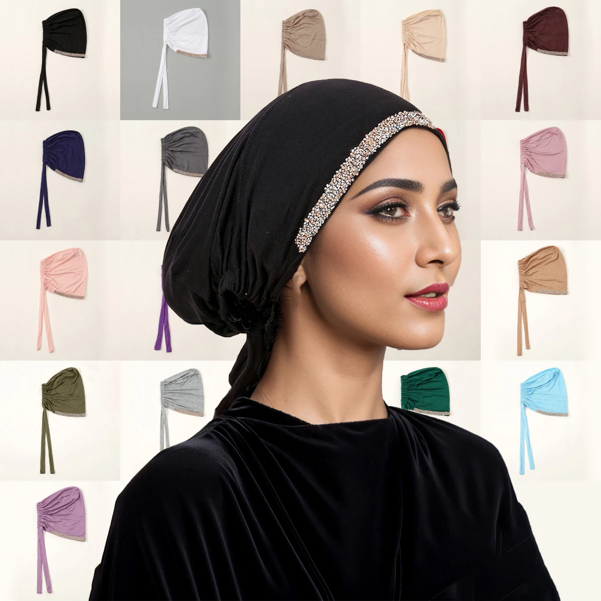 Hijab NikMusulman avec Strass Brillants pour Femme, Turban artificiel astique, Uni, Solide, Sous-Capuchons, Premium, Jersey Souple, Bande de Sauna |