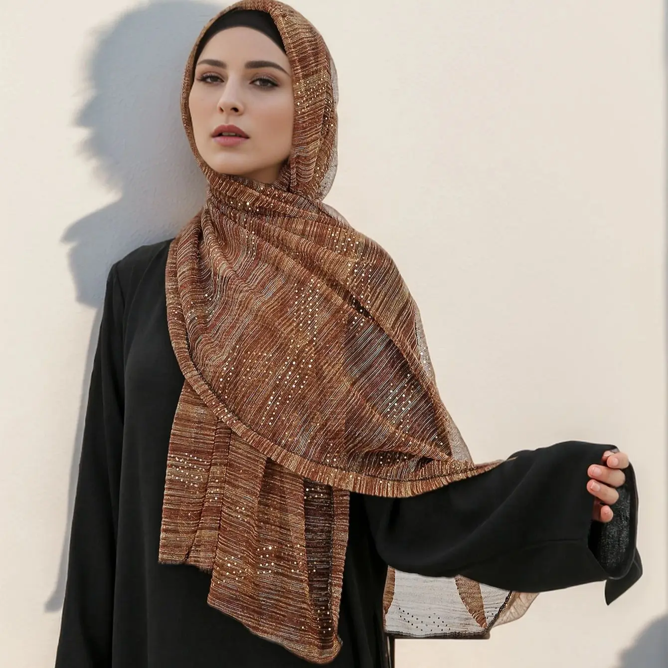 "J'ai été très impressionnée par la qualité de ce hijab à paillettes. Le tissu est doux et confortable, et les paillettes ajoutent une touche de brillance vraiment élégante. Bien que le hijab soit un peu lourd à porter, cela n'a pas nui à mon confort. Dans l'ensemble, c'est un excellent produit qui correspond parfaitement à mes attentes."